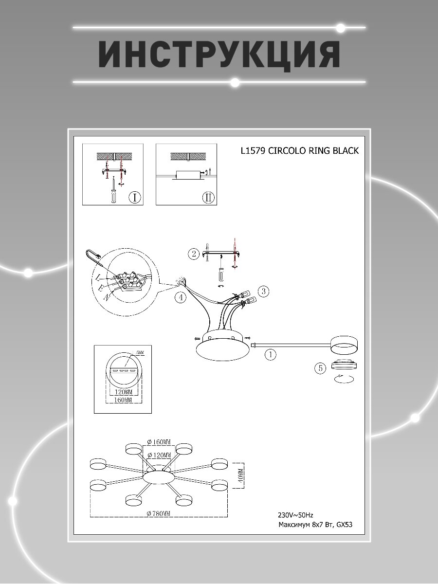 Люстра потолочная Lamplandia L1579 CIRCOLO RING BLACK, GX53*8 макс 7Вт интересное: