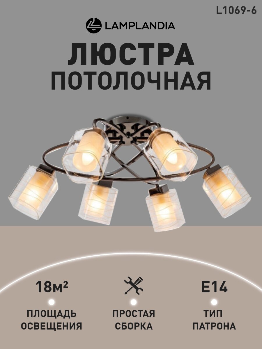 Люстра потолочная Lamplandia L1069-6 HAMBURG, Е14*6 макс 40Вт интересное: