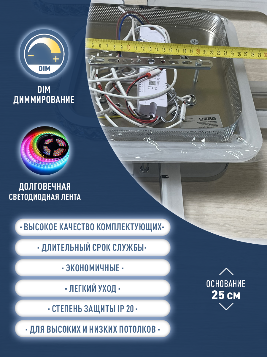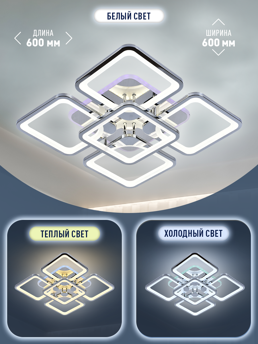 Люстра потолочная светодиодная с пультом Profit Light 8057/4+1 CHR 170W+10W RGB интересное: