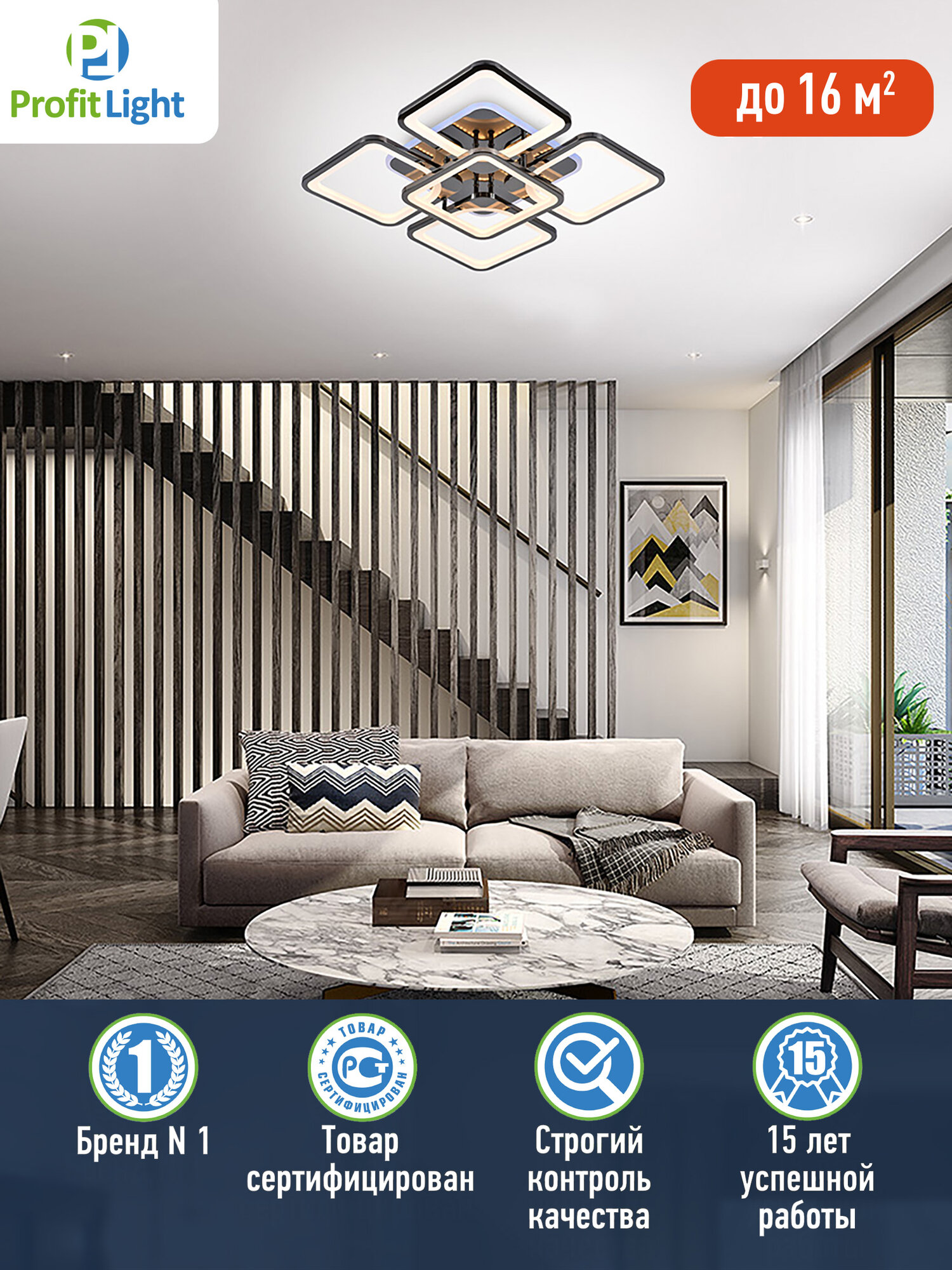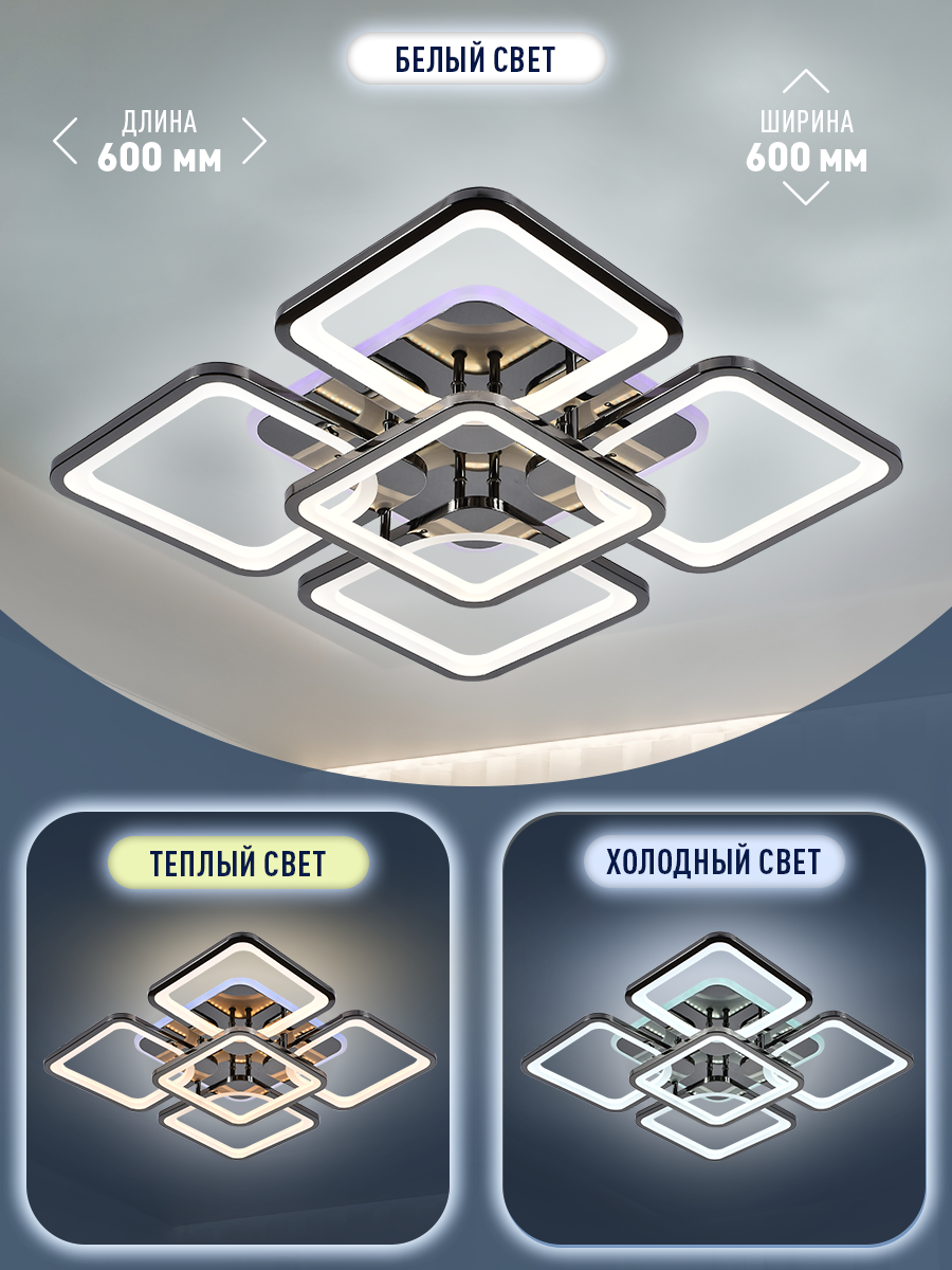 Люстра потолочная светодиодная с пультом Profit Light 8057/4+1 PBK 170W+10W RGB Profit Light интересное: