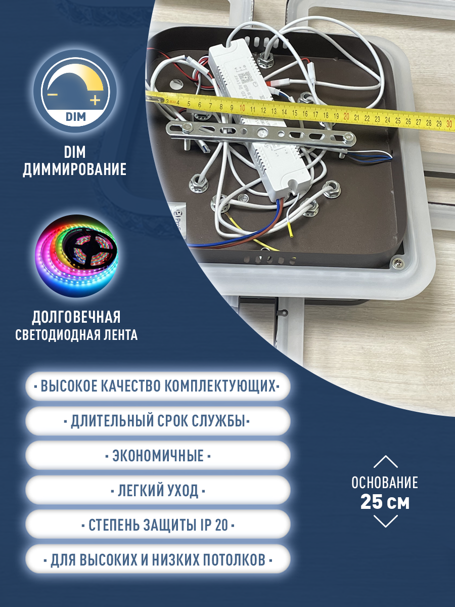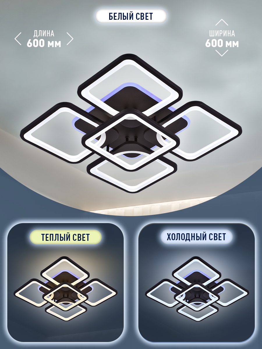 Люстра потолочная светодиодная с пультом Profit Light 8057/4+1 COF 170W+12W RGB интересное: