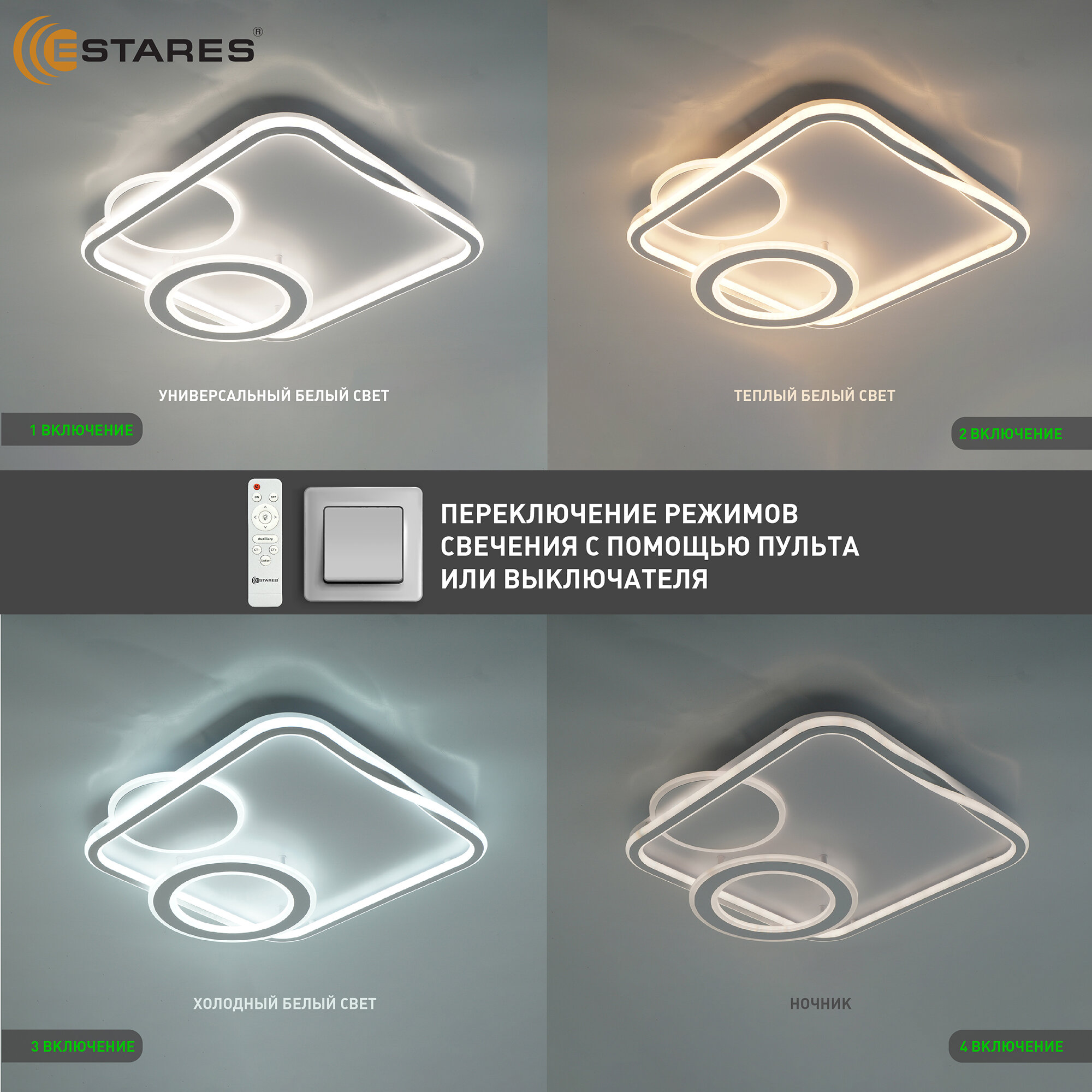 Управляемая светодиодная потолочная люстра 90вт квадрат -Estares- интересное: