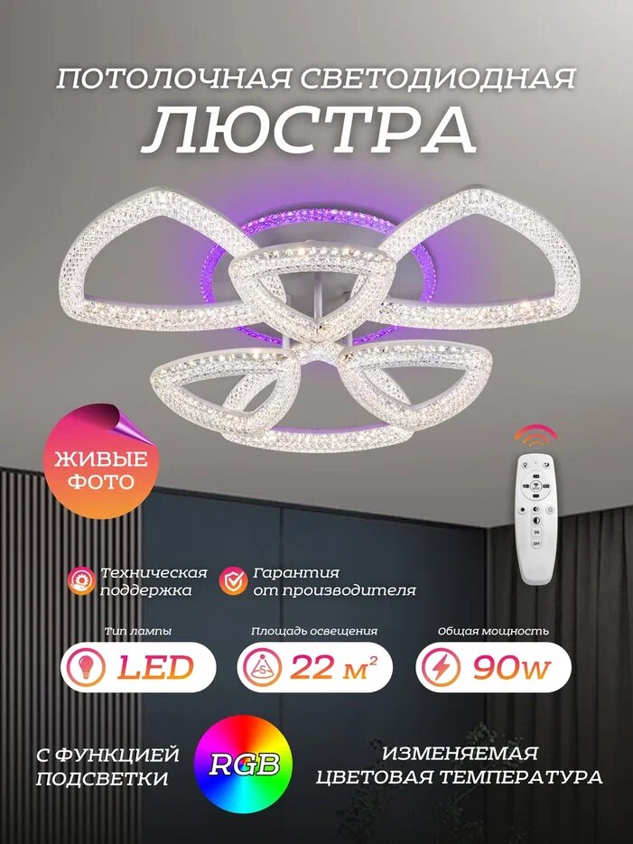 Люстра потолочная светодиодная с RGB и пультом дистанционного управления L3708-6 интересное: