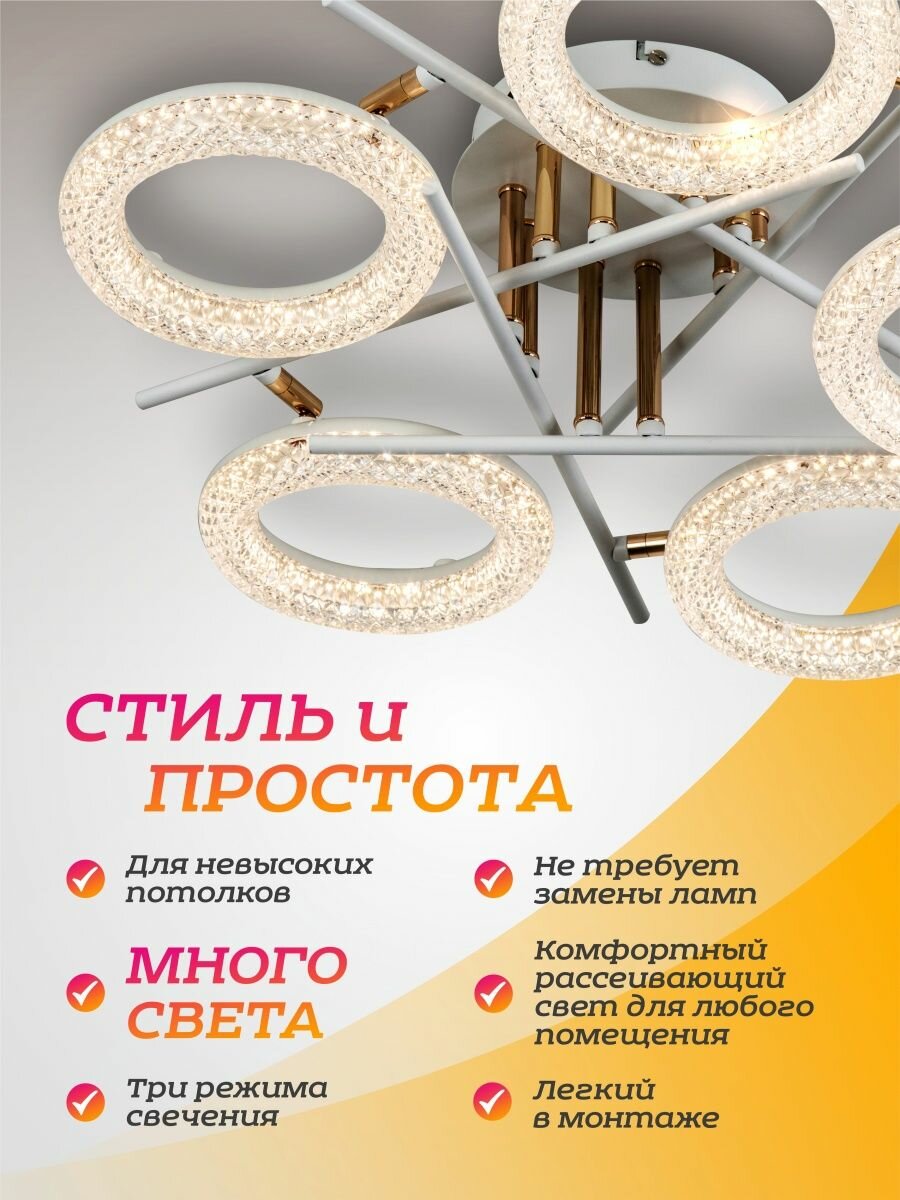 Люстра потолочная LED4U L6622-5, светодиодная, с пультом, для низкого потолка интересное: