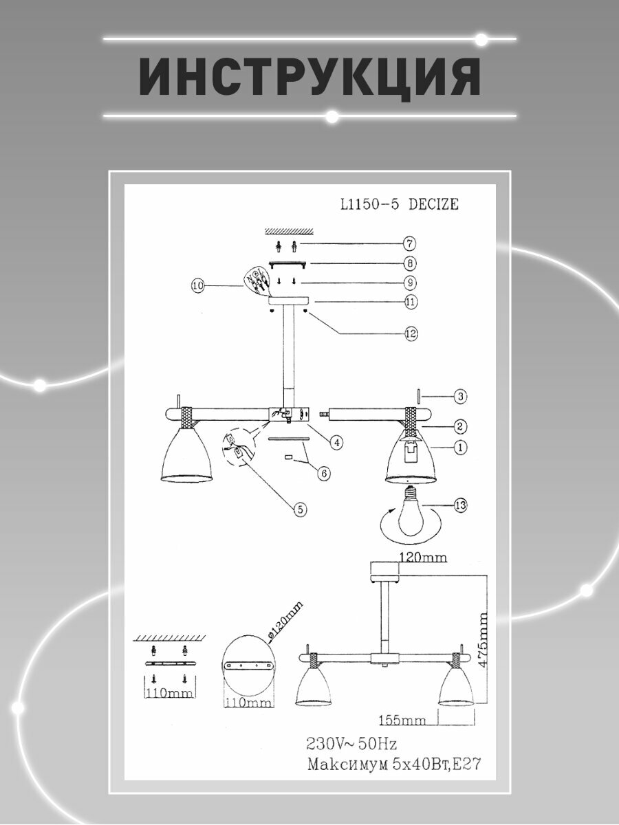 Люстра потолочная Lamplandia L1150-5 DECIZE, Е27*5 макс 40Вт интересное: