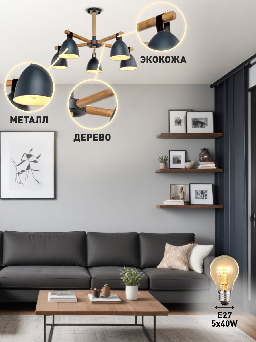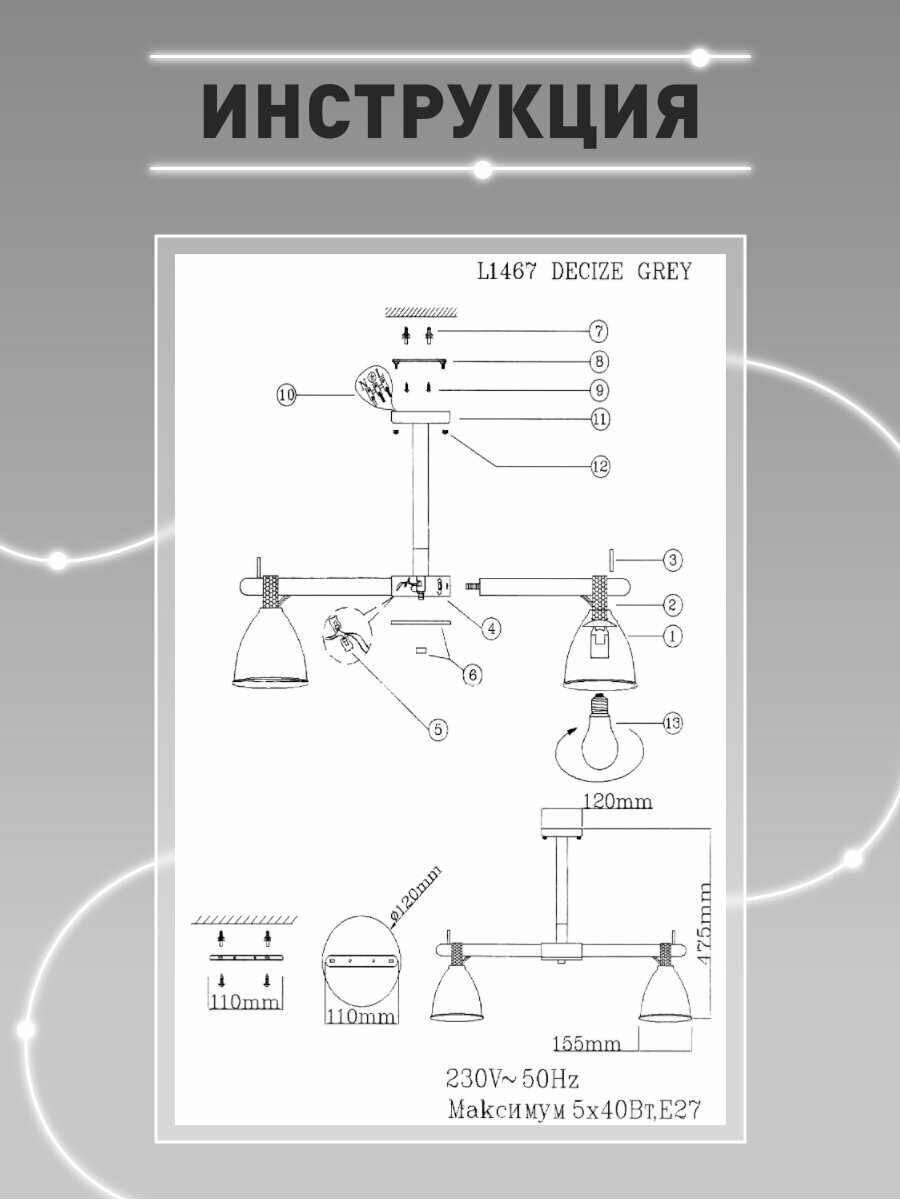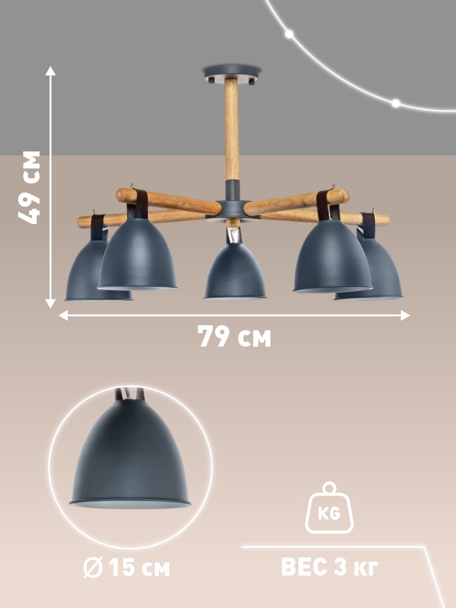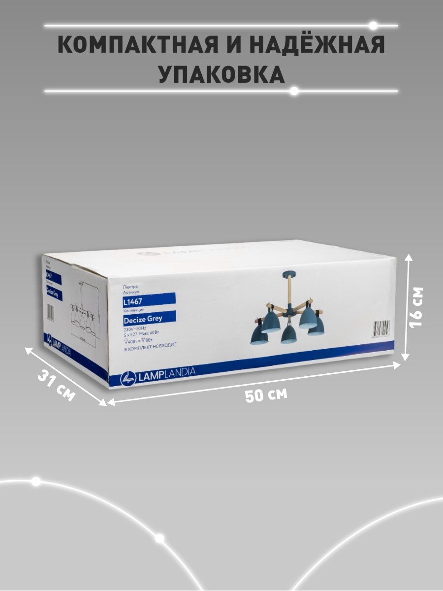 Люстра потолочная Lamplandia L1467 DECIZE GREY, Е27*5 макс 40Вт интересное:
