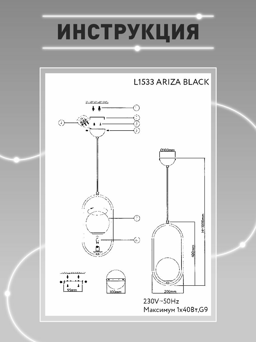 Светильник подвесной Lamplandia L1533 ARIZA BLACK, G9*1 макс 40Вт интересное:
