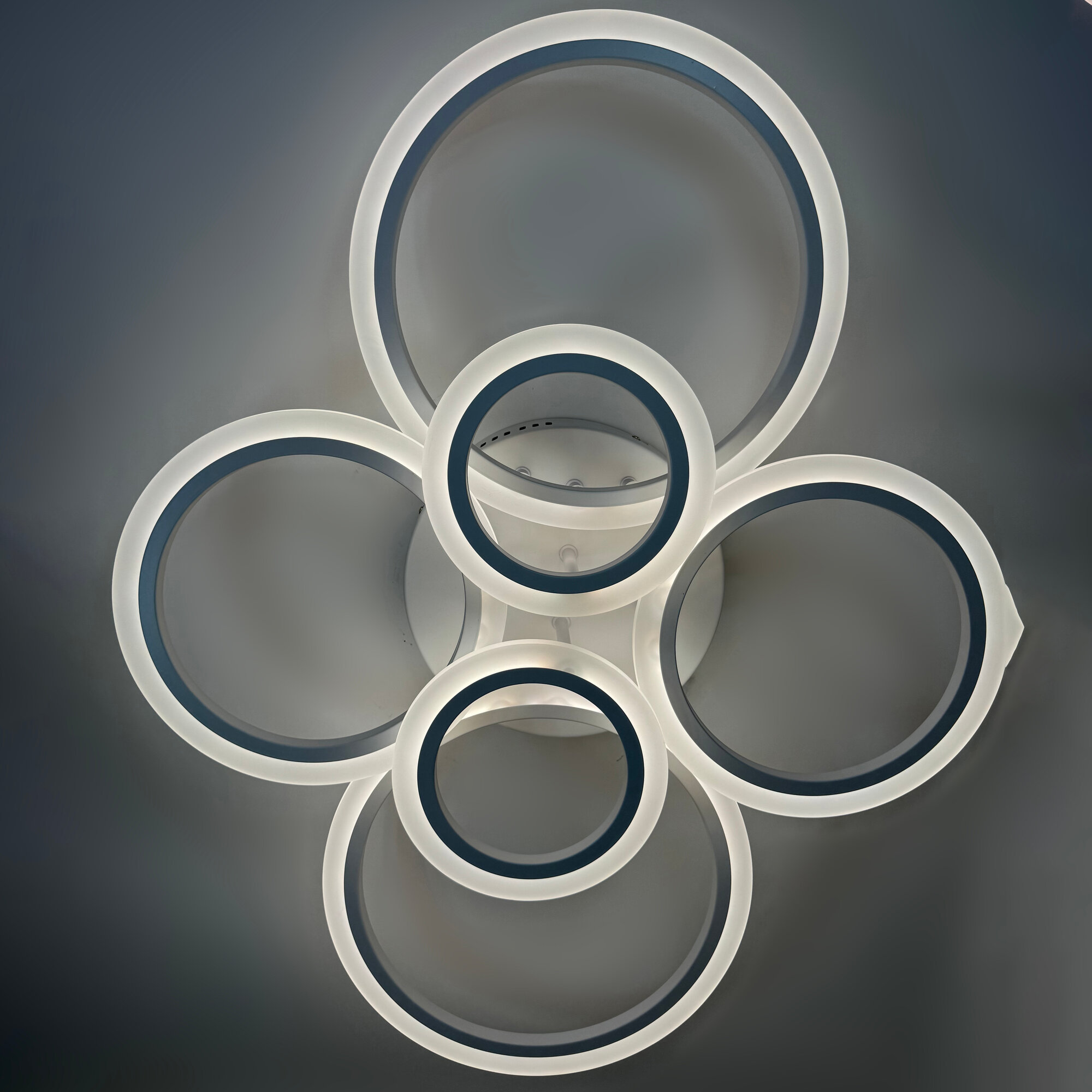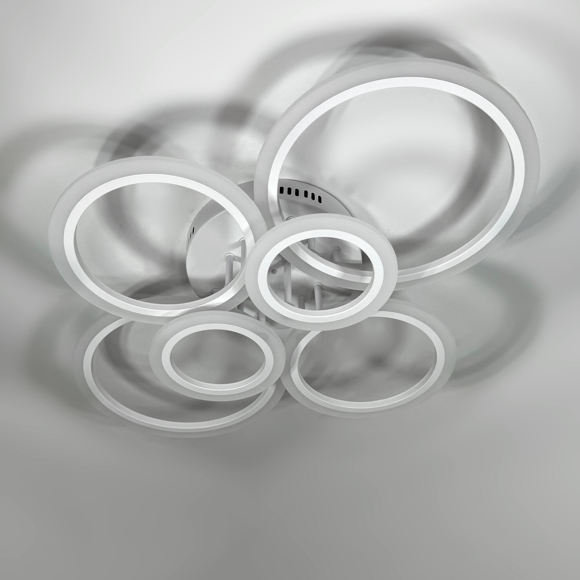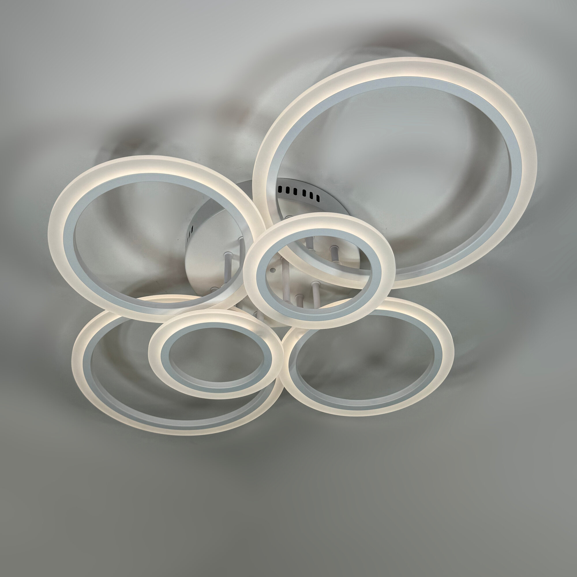 Люстра потолочная светодиодная SVK с пультом и диммером, белая, кольца, 108W