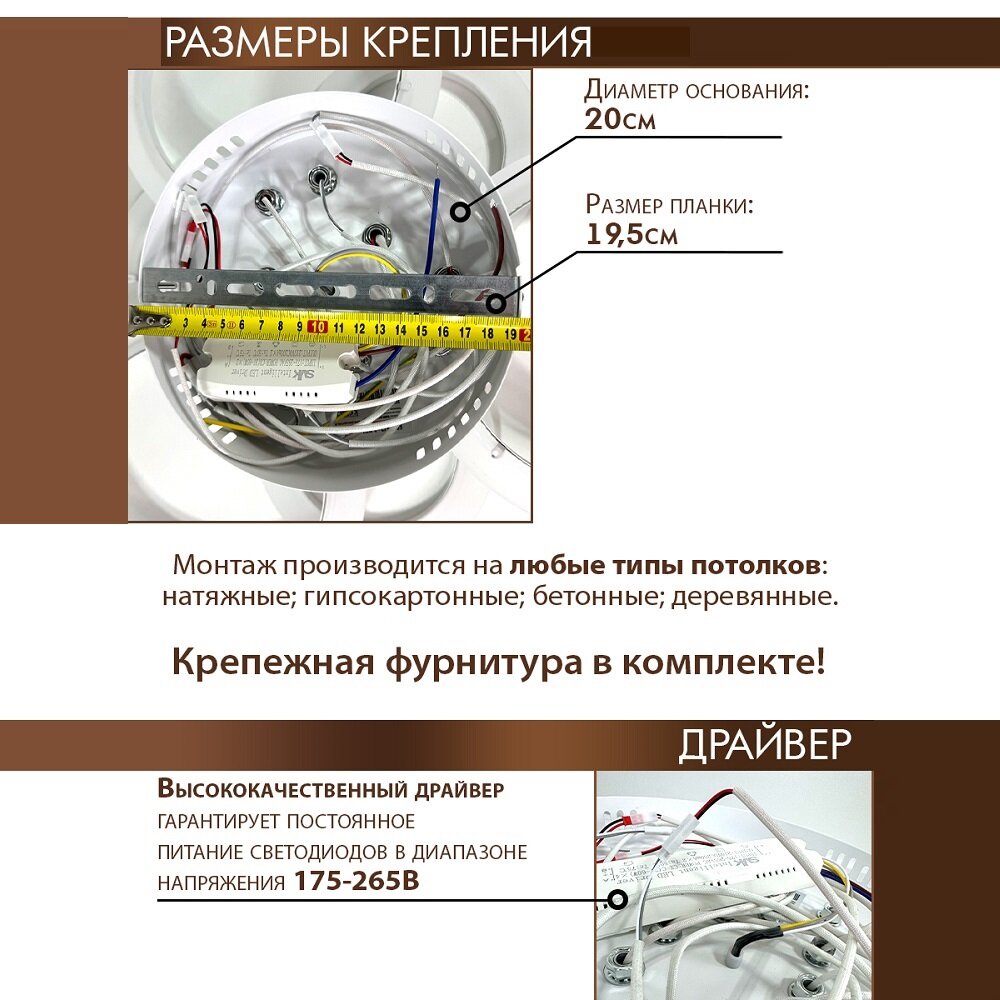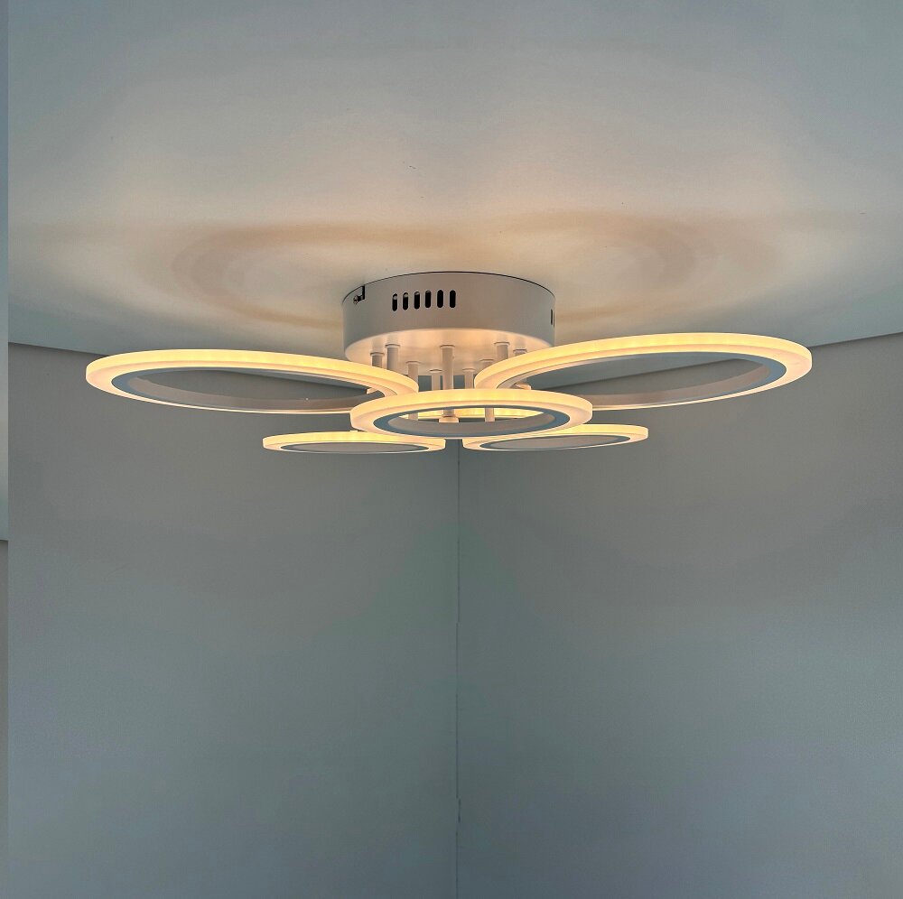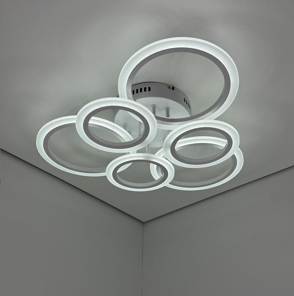 Люстра потолочная светодиодная SVK с пультом и диммером, белая, кольца, 108W интересное: