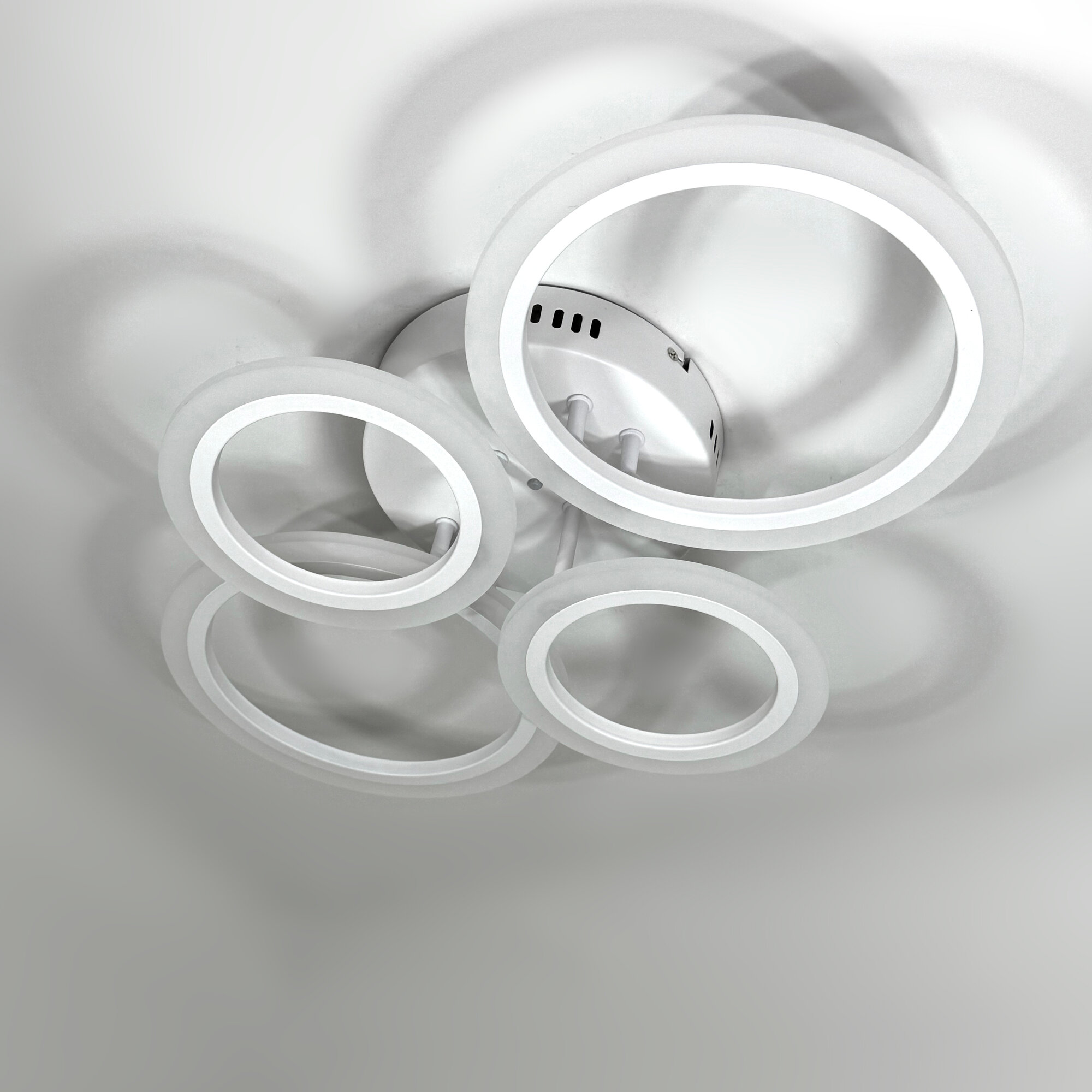 Люстра потолочная светодиодная SVK с пультом и диммером, белая, кольца, 108W