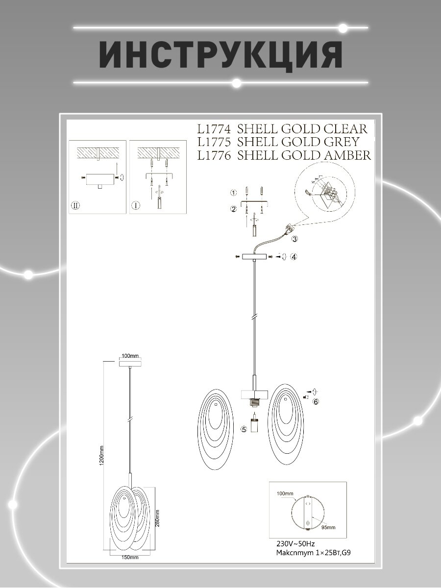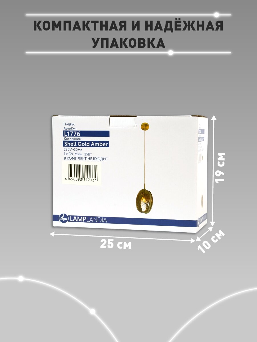 Светильник подвесной Lamplandia L1776 SHELL GOLD AMBER, G9*1 макс 25Вт интересное: