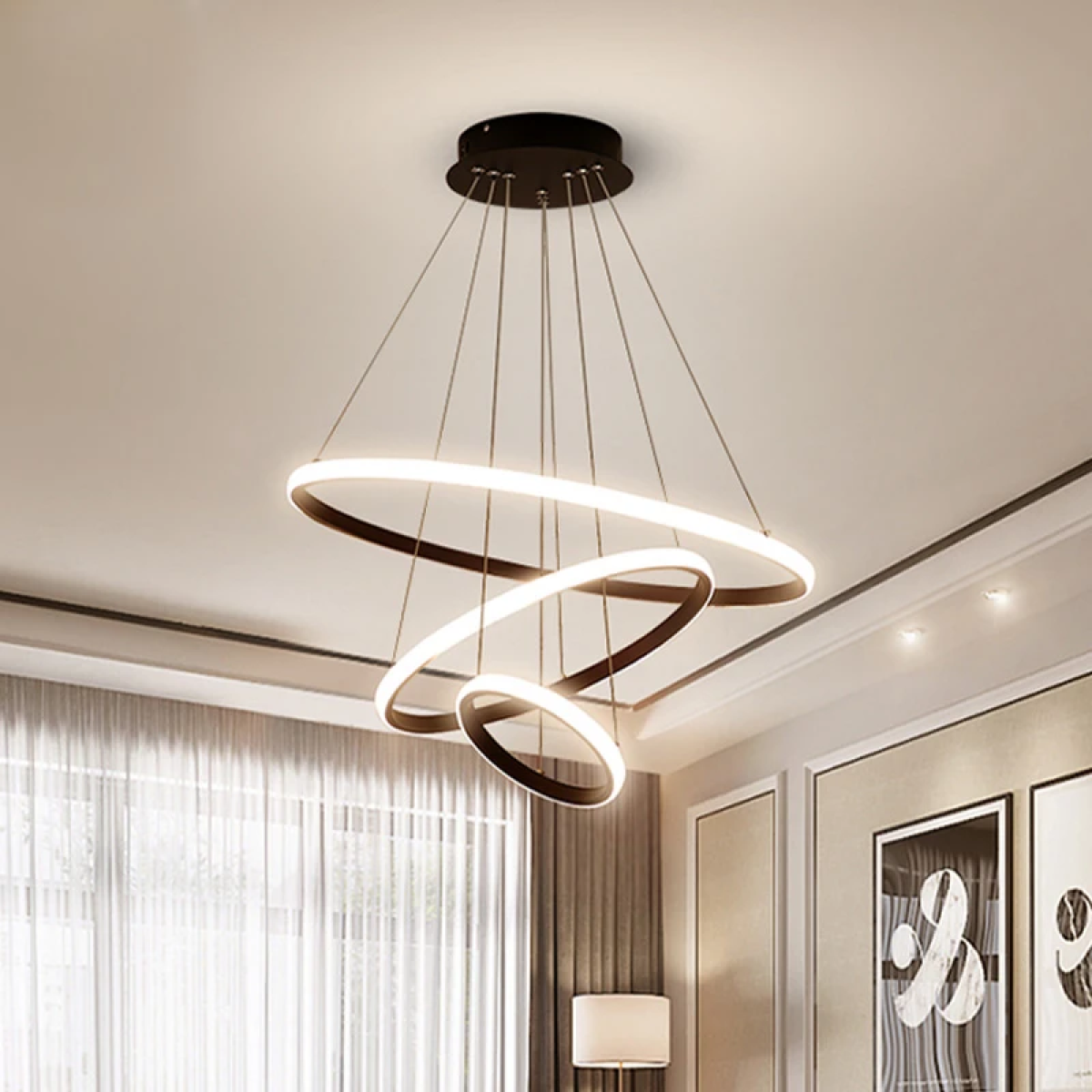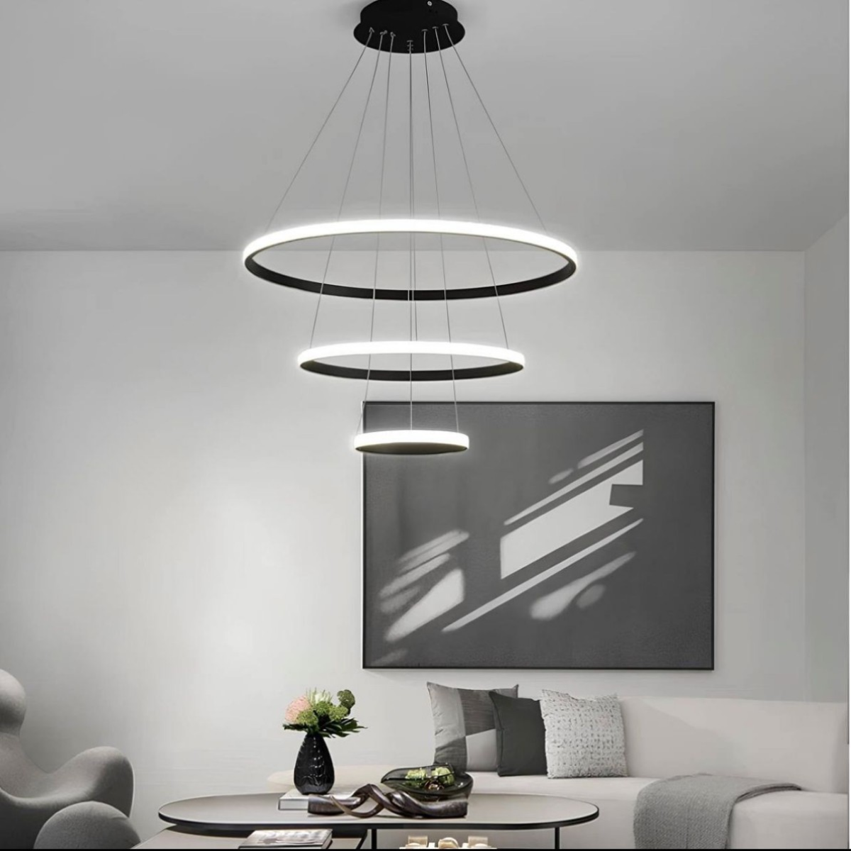Купить Люстра подвесная светодиодная, для всех видов потолков, 3 режима свечения, черная