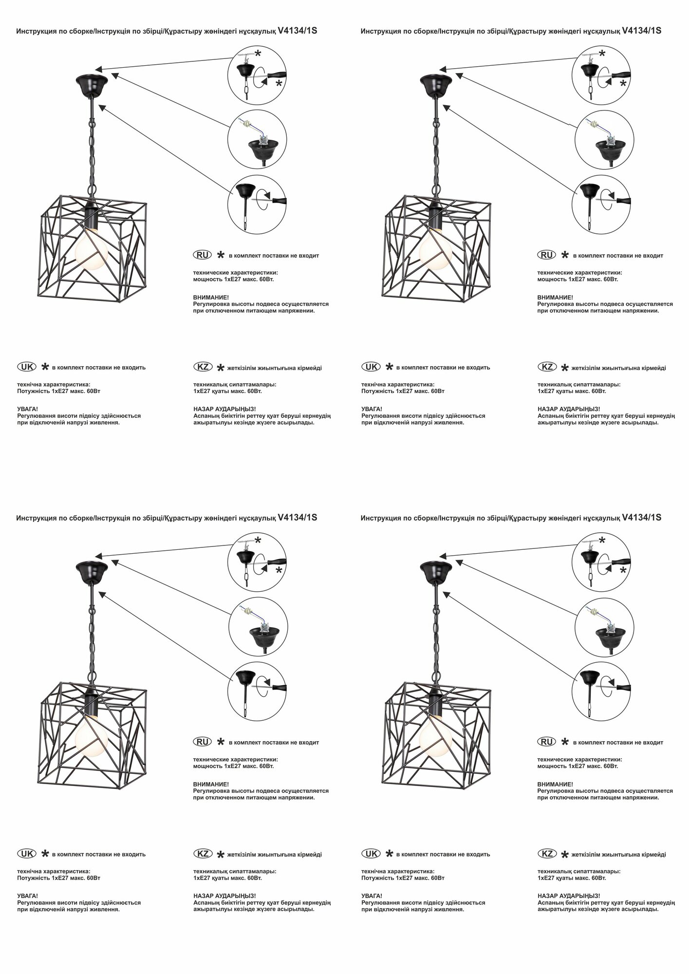 Подвес Vitaluce V4134/1S , 1 лампа 3м2, Е27, 60Вт, цвет чёрный. интересное: