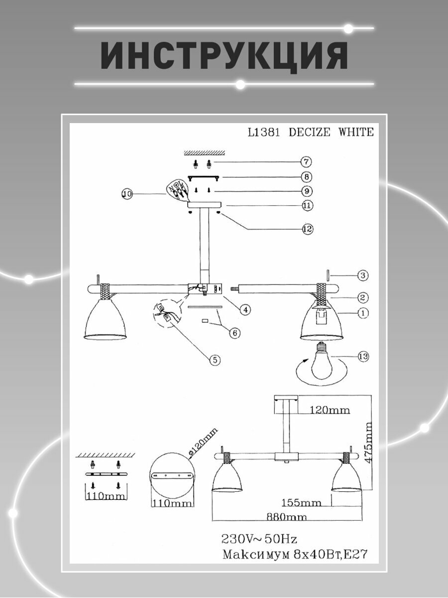 Люстра потолочная Lamplandia L1381 DECIZE WHITE, E27*8 макс 40Вт интересное: