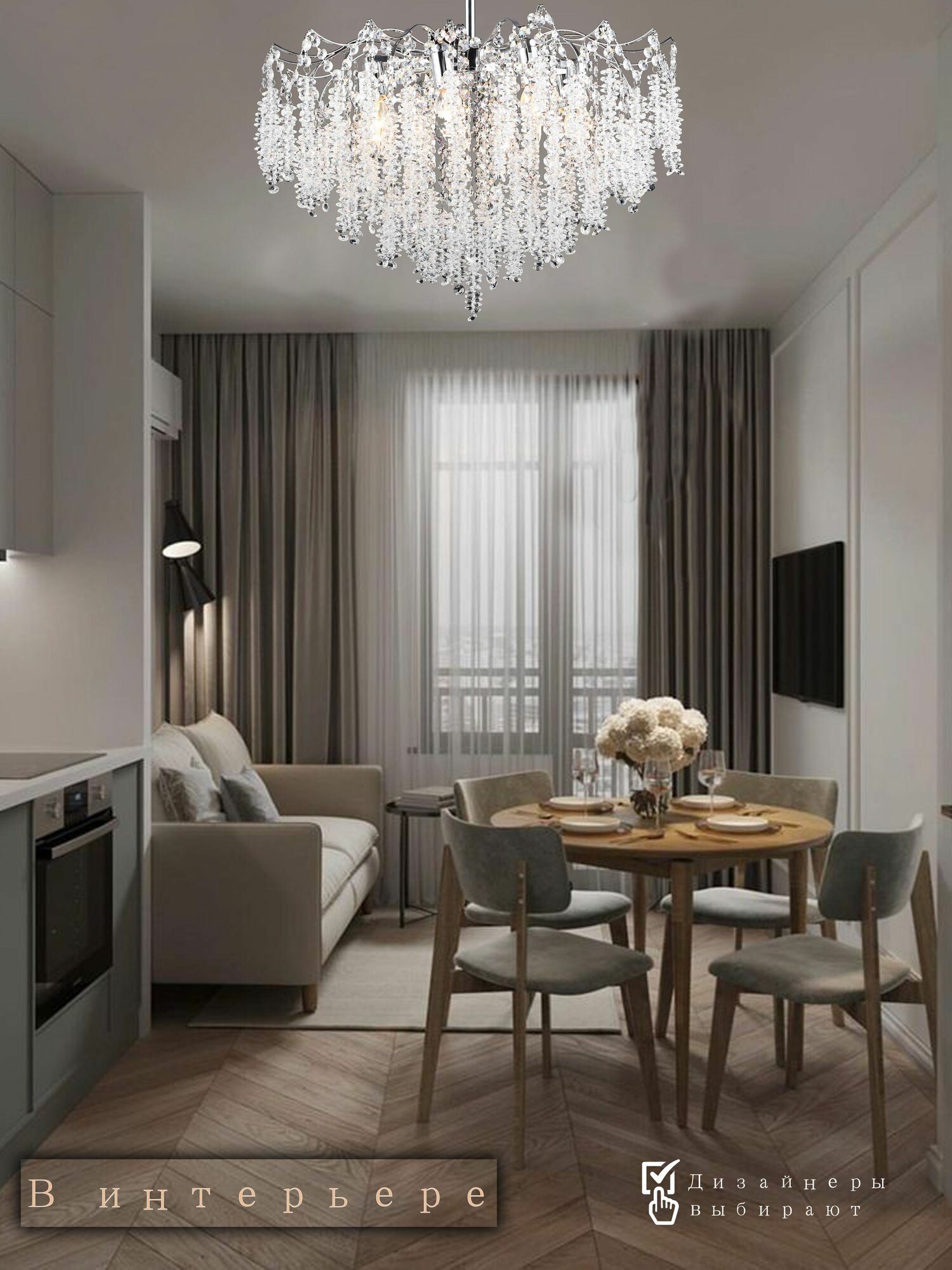 СохранитьЛюстра хрустальная хром потолочная с прозрачными хрустальными подвесками на 8 ламп E14 интересное: