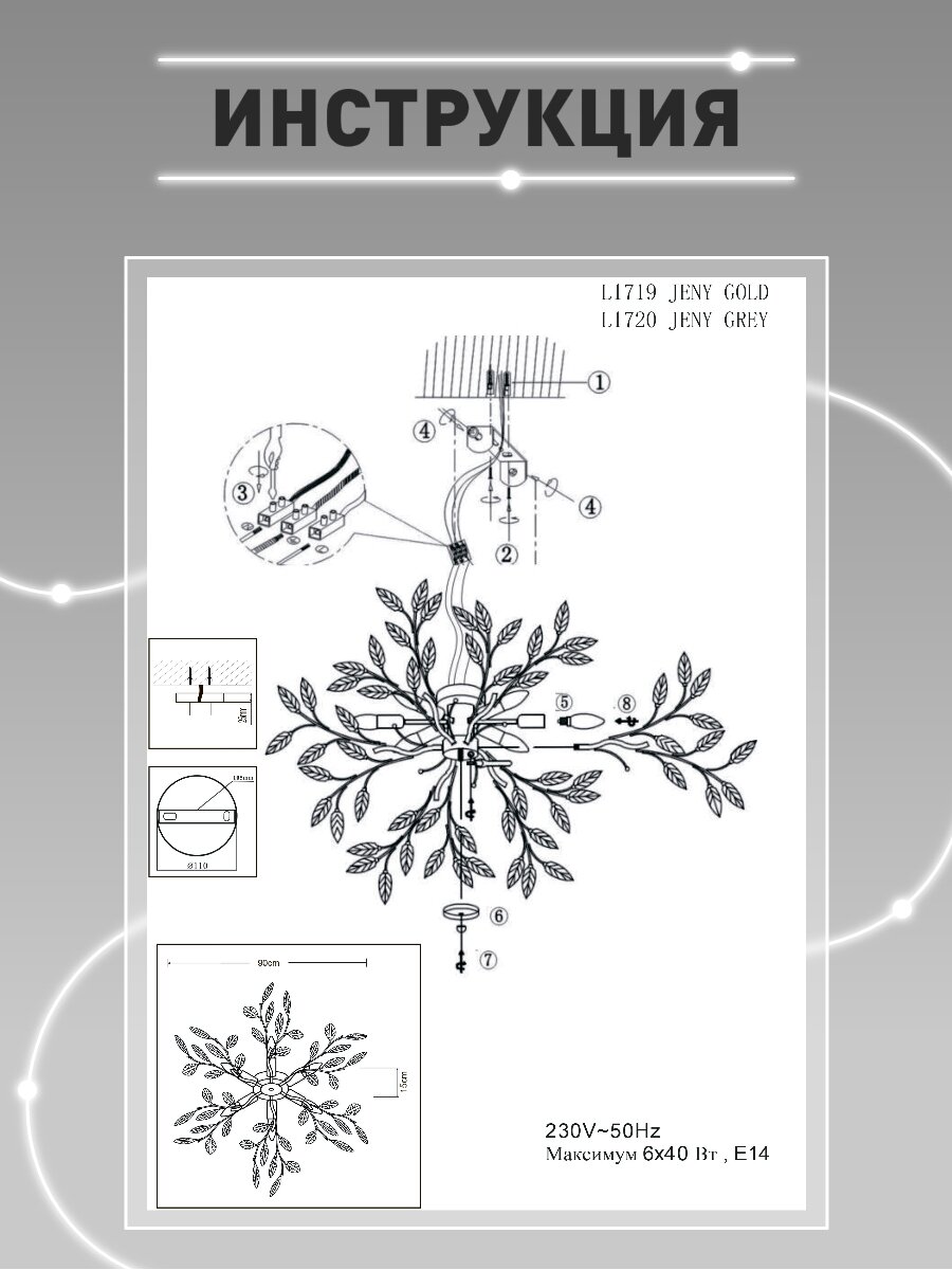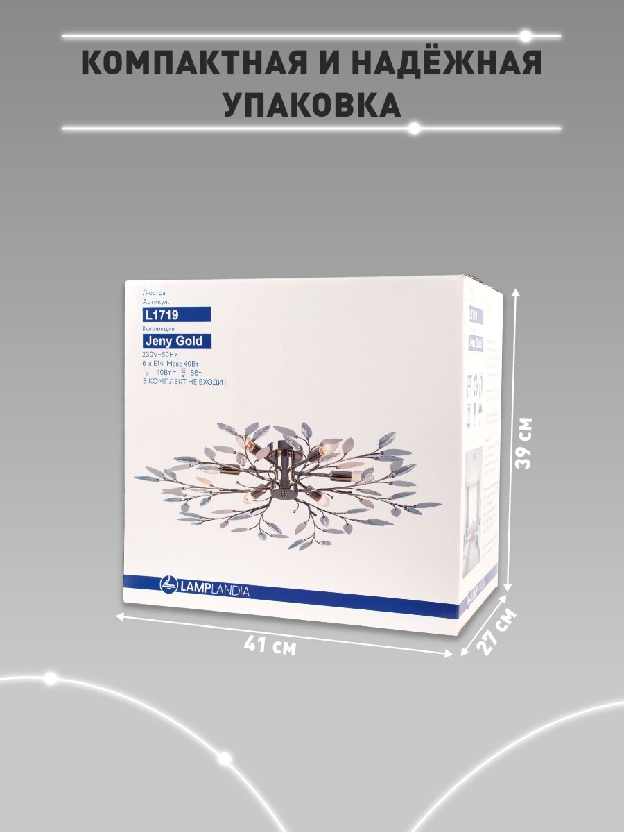 Люстра потолочная Lamplandia L1719 JENY GOLD, E14*6 макс 40Вт интересное: