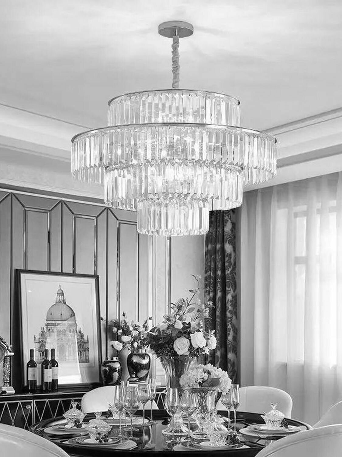 Купить Люстра хрустальная с регулировкой подвеса, цоколь E14, металлическая, серебристая, 25м²