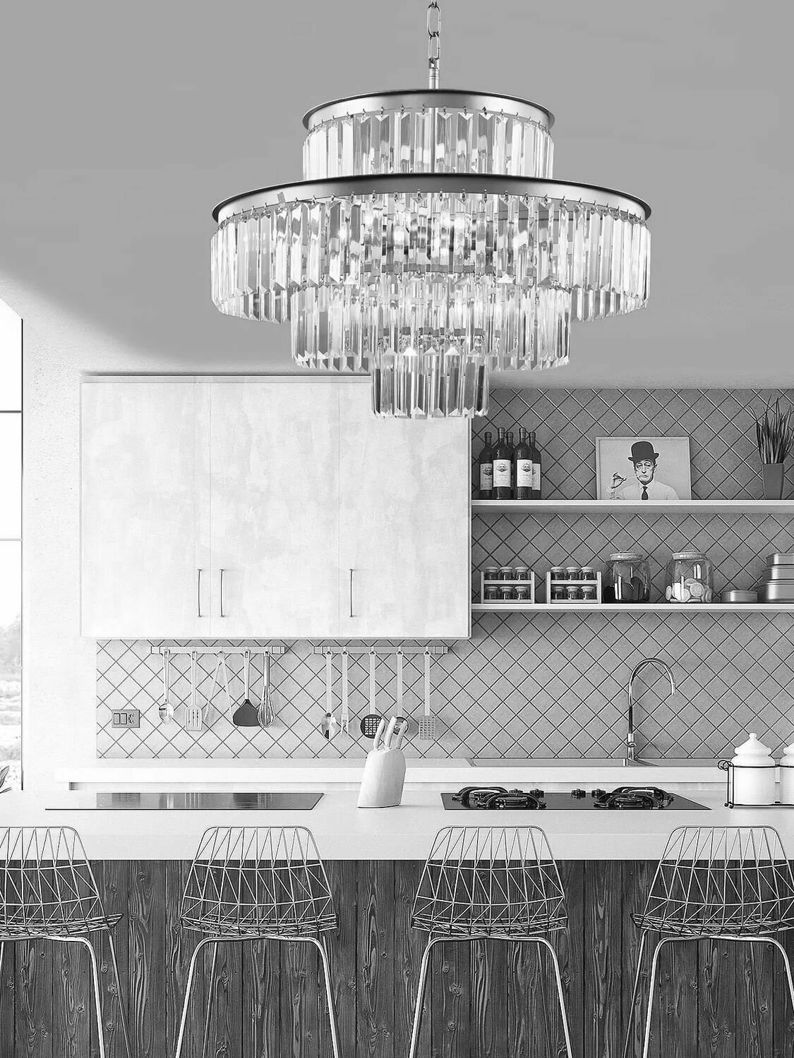 Люстра хрустальная с регулировкой подвеса, цоколь E14, металлическая, серебристая, 25м² интересное: