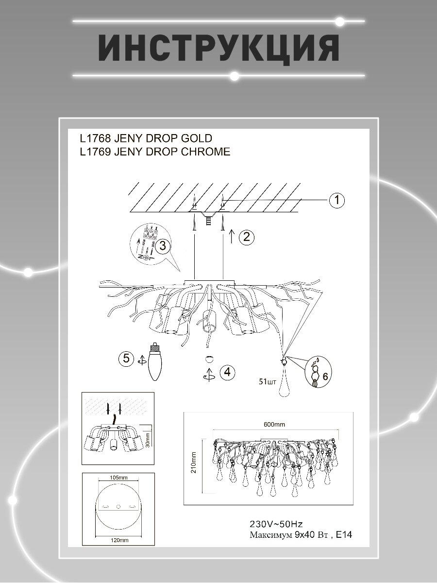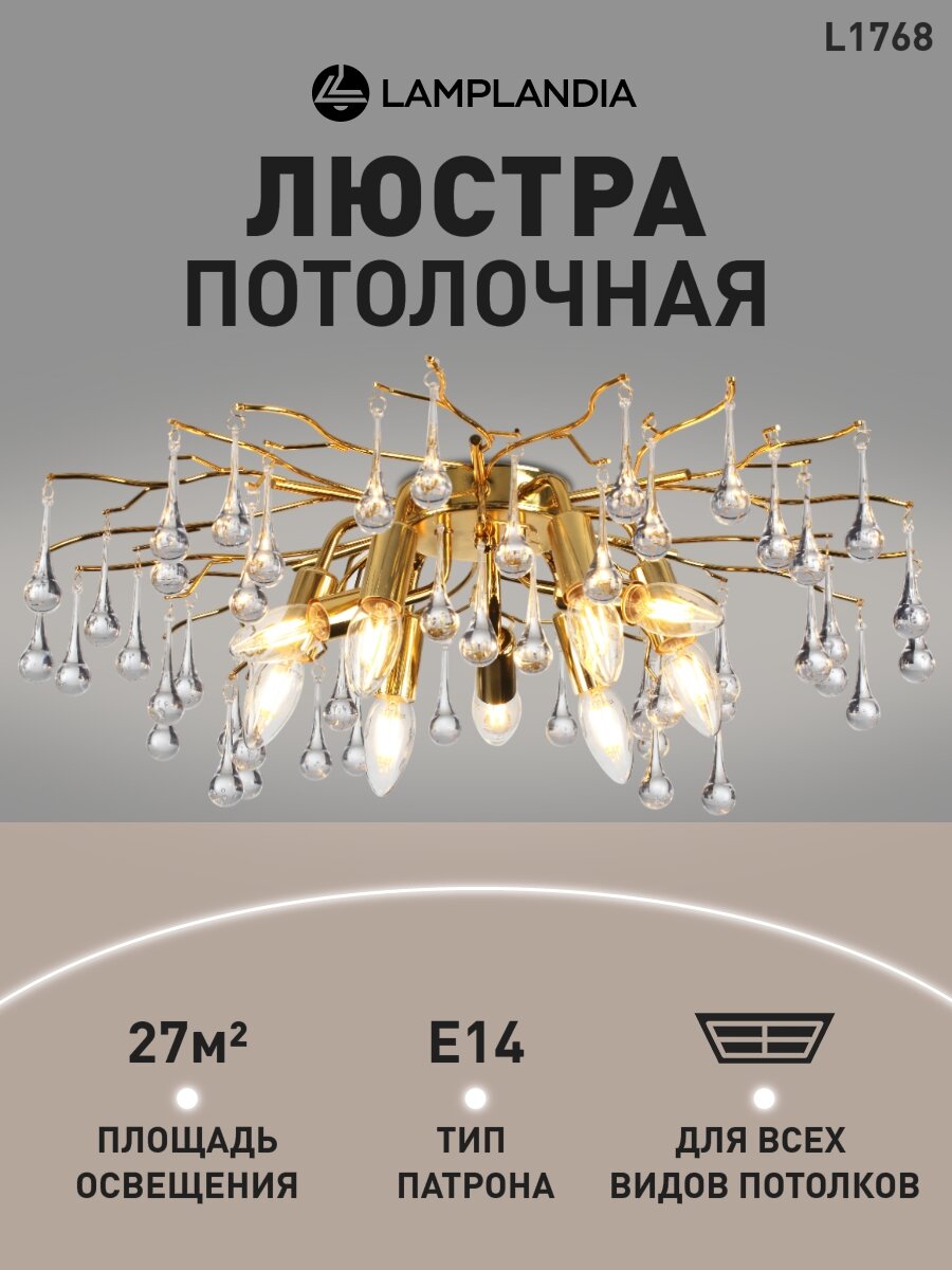 Люстра потолочная Lamplandia L1768 JENY DROP GOLD, E14*9 макс 40Вт интересное:
