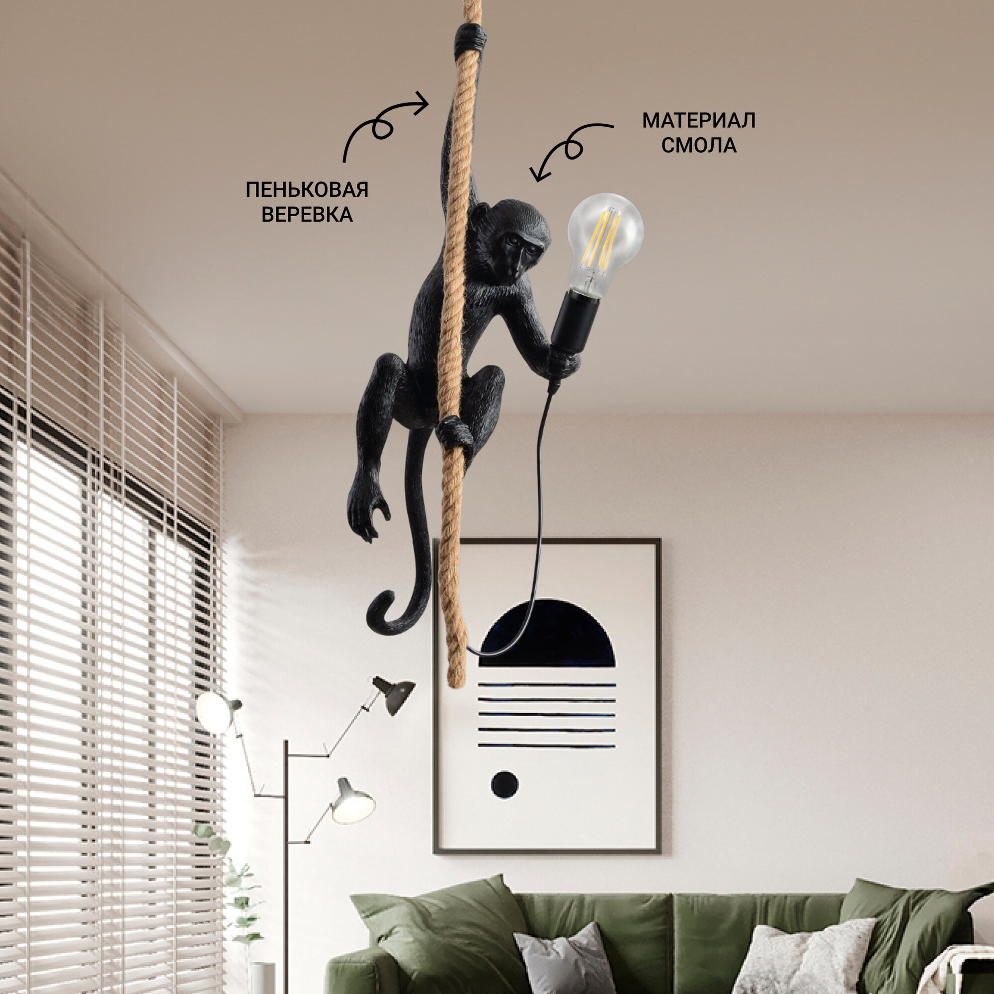 Купить Люстра потолочная подвесная в виде обезьяны/мартышки Балтийский Светлячок