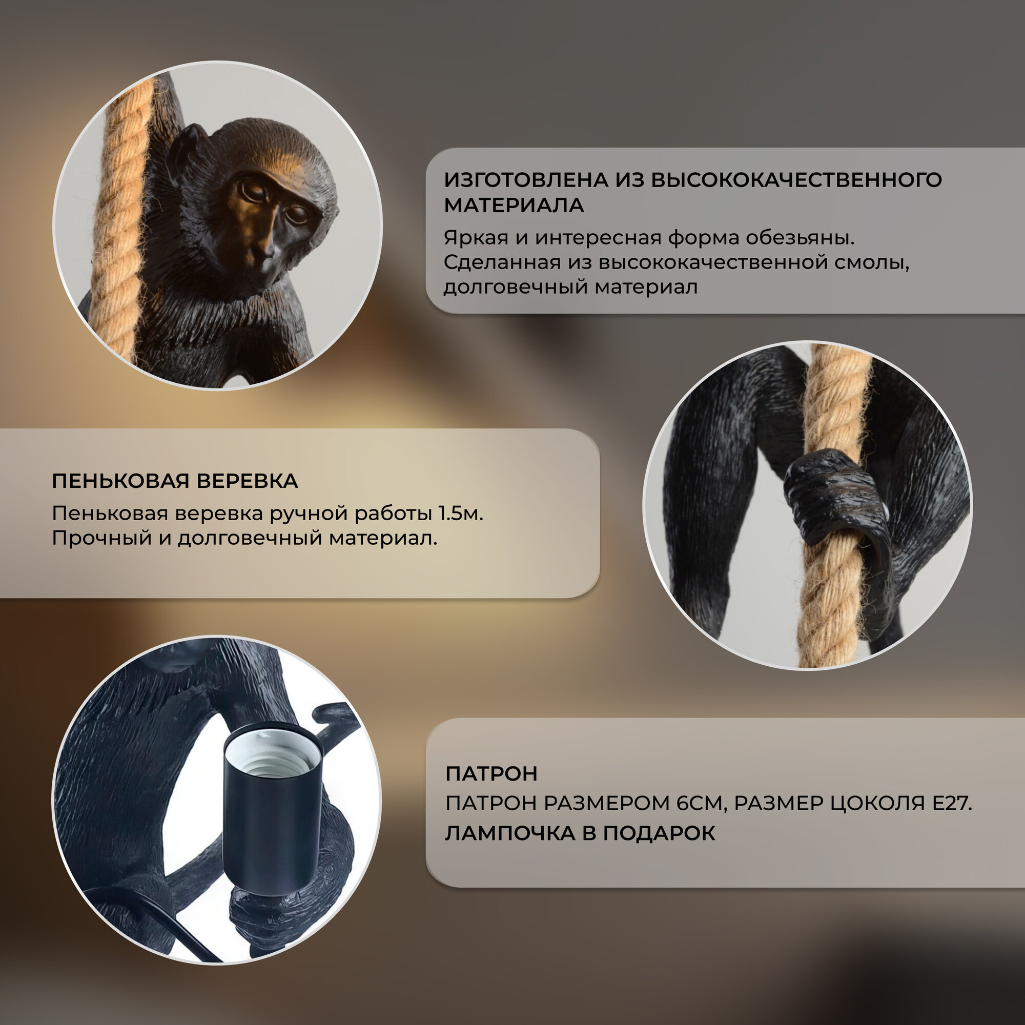 Люстра потолочная подвесная в виде обезьяны/мартышки Балтийский Светлячок интересное:
