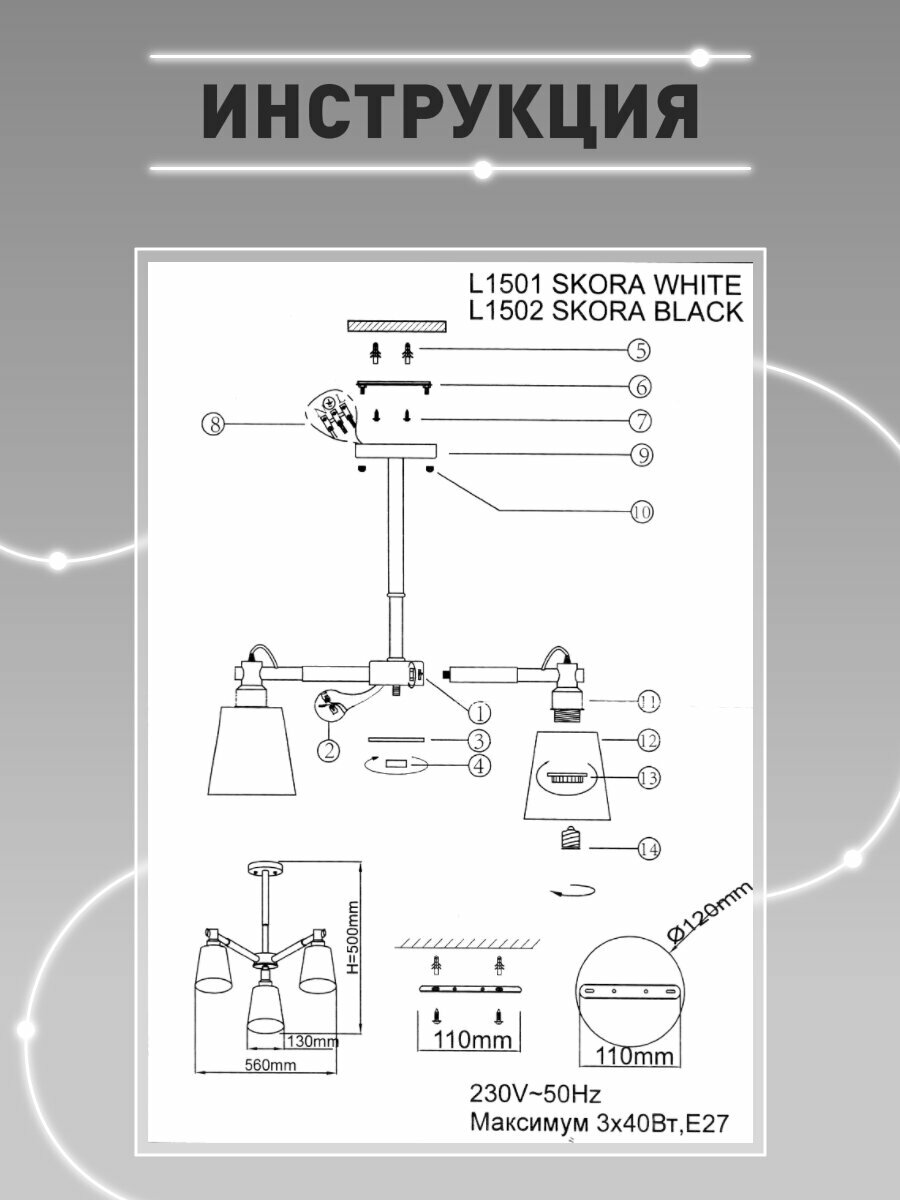 Люстра потолочная Lamplandia L1501 SKORA WHITE, E27*3 макс 40Вт интересное: