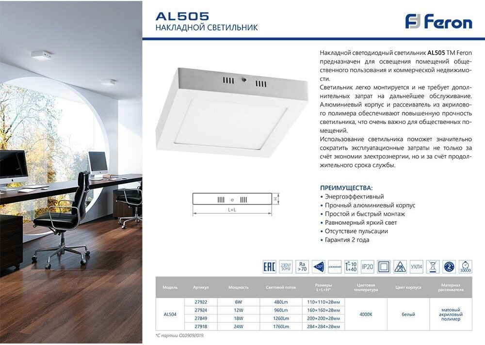 Светильник накладной светодиодный ДПО белый 6Вт 480Лм дневной белый свет IP40 4000К AL505, 27922 интересное:
