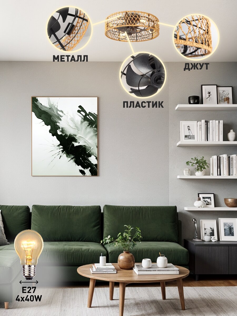 Люстра потолочная с вентилятором Lamplandia L1688 BREEZE NATURAL, E27*4 макс 40Вт, вентилятор 15Вт DS интересное: