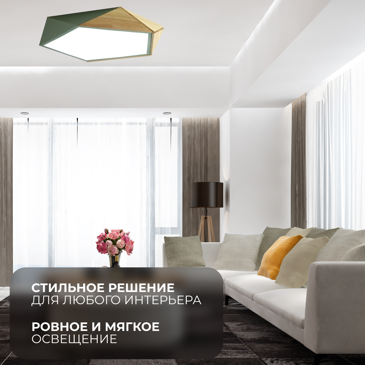 СохранитьЛюстра потолочная светодиодная пятиугольник, зеленый/светлое дерево интересное: