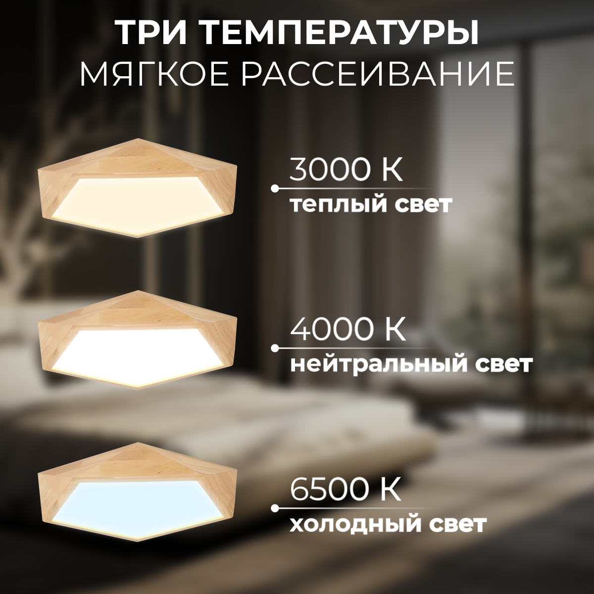 СохранитьЛюстра потолочная светодиодная пятиугольник, светлое дерево интересное: