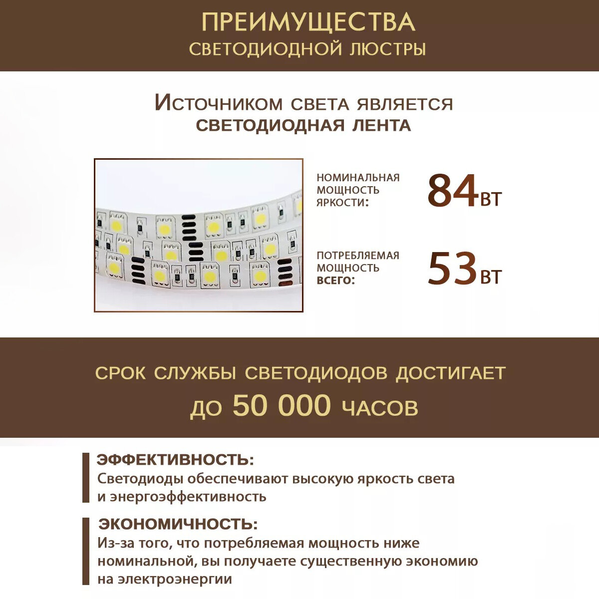 Люстра светодиодная с пультом и диммером 84W, матовое золото интересное: