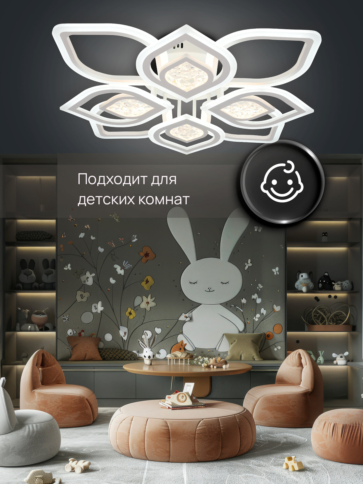 Люстра потолочная светодиодная Семь Огней, белая с пультом для спальни, для кухни