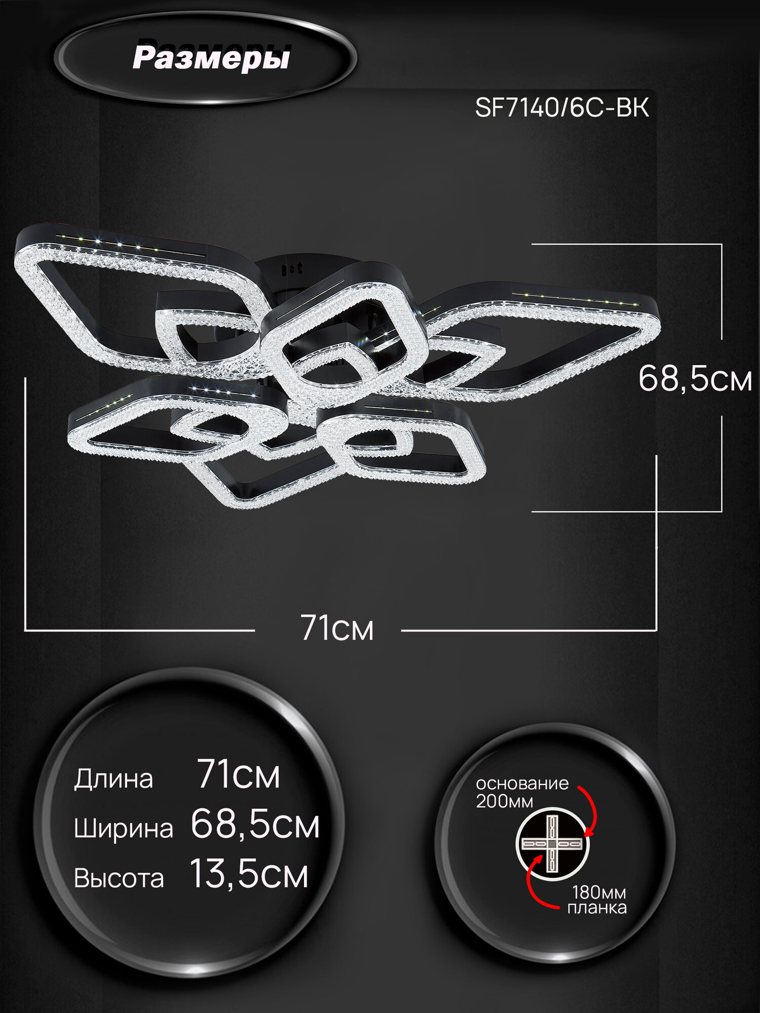 Люстра потолочная светодиодная Семь Огней, черная с пультом, до 24 кв. м. интересное: