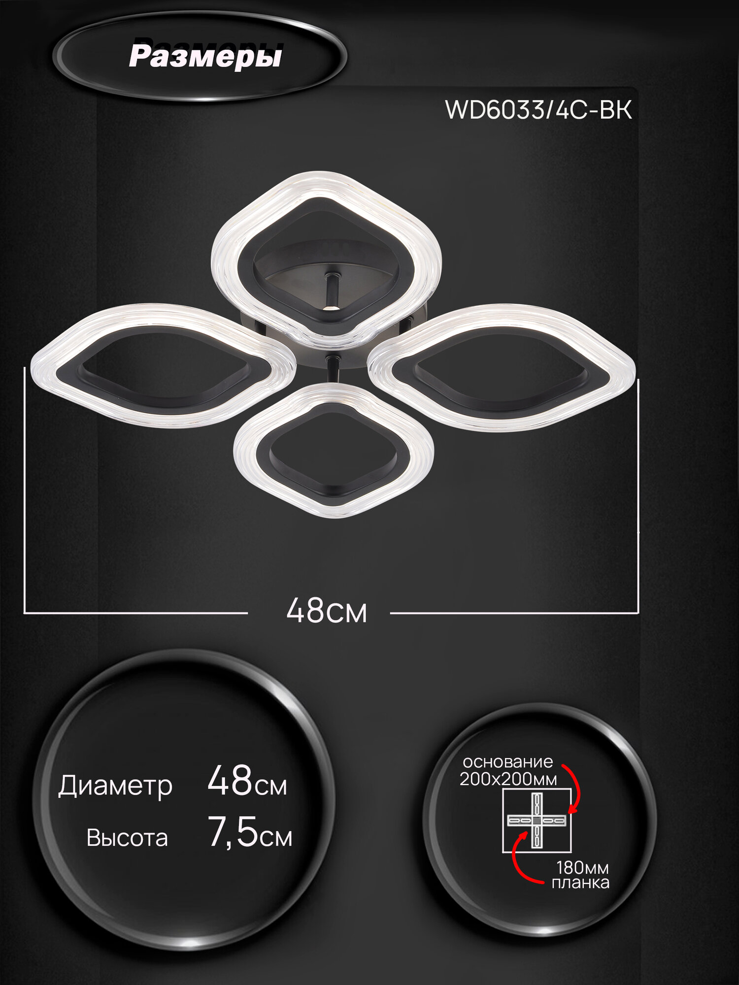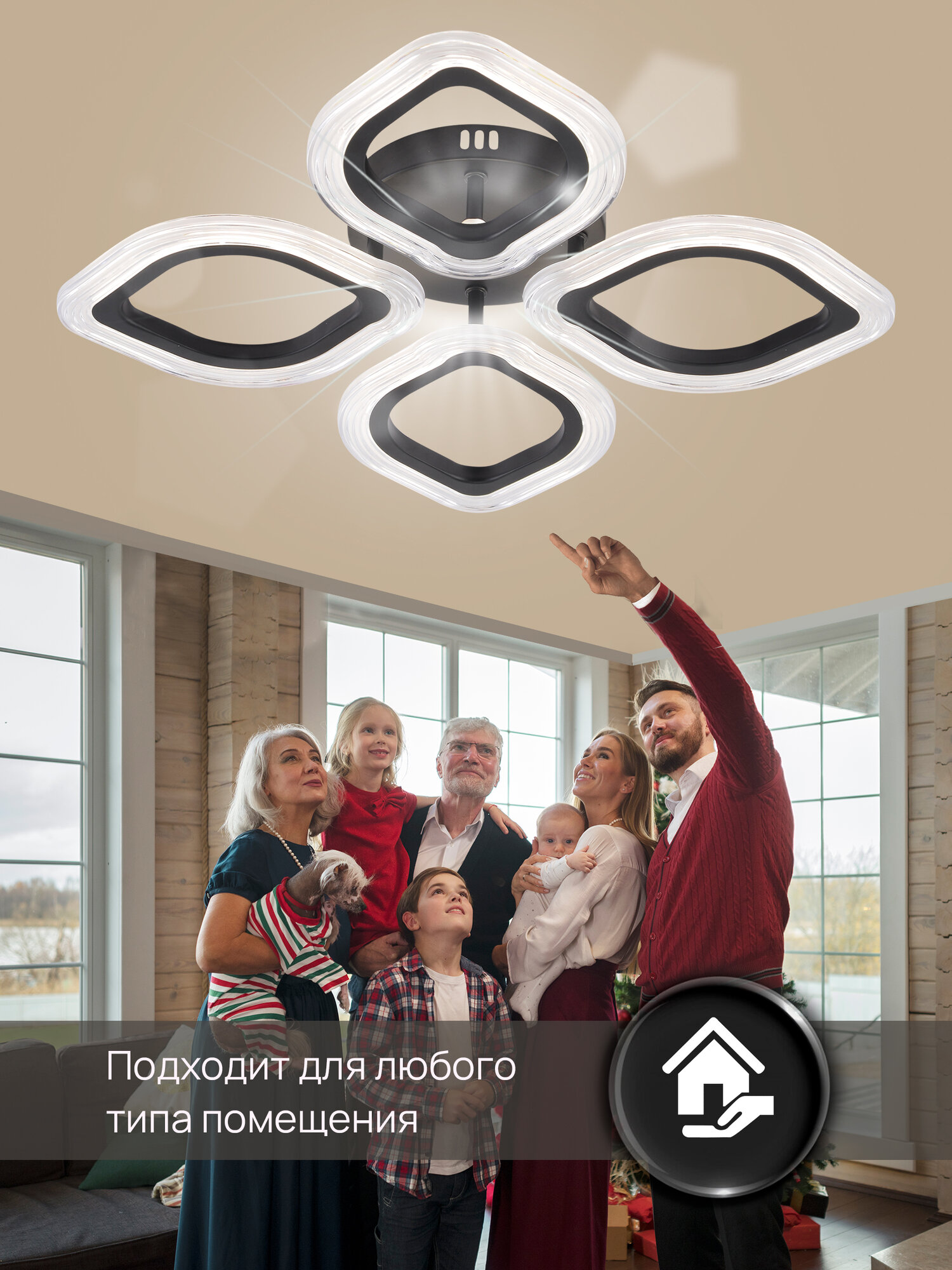Люстра потолочная светодиодная Семь Огней, черная с пультом , до 12 кв. м. интересное: