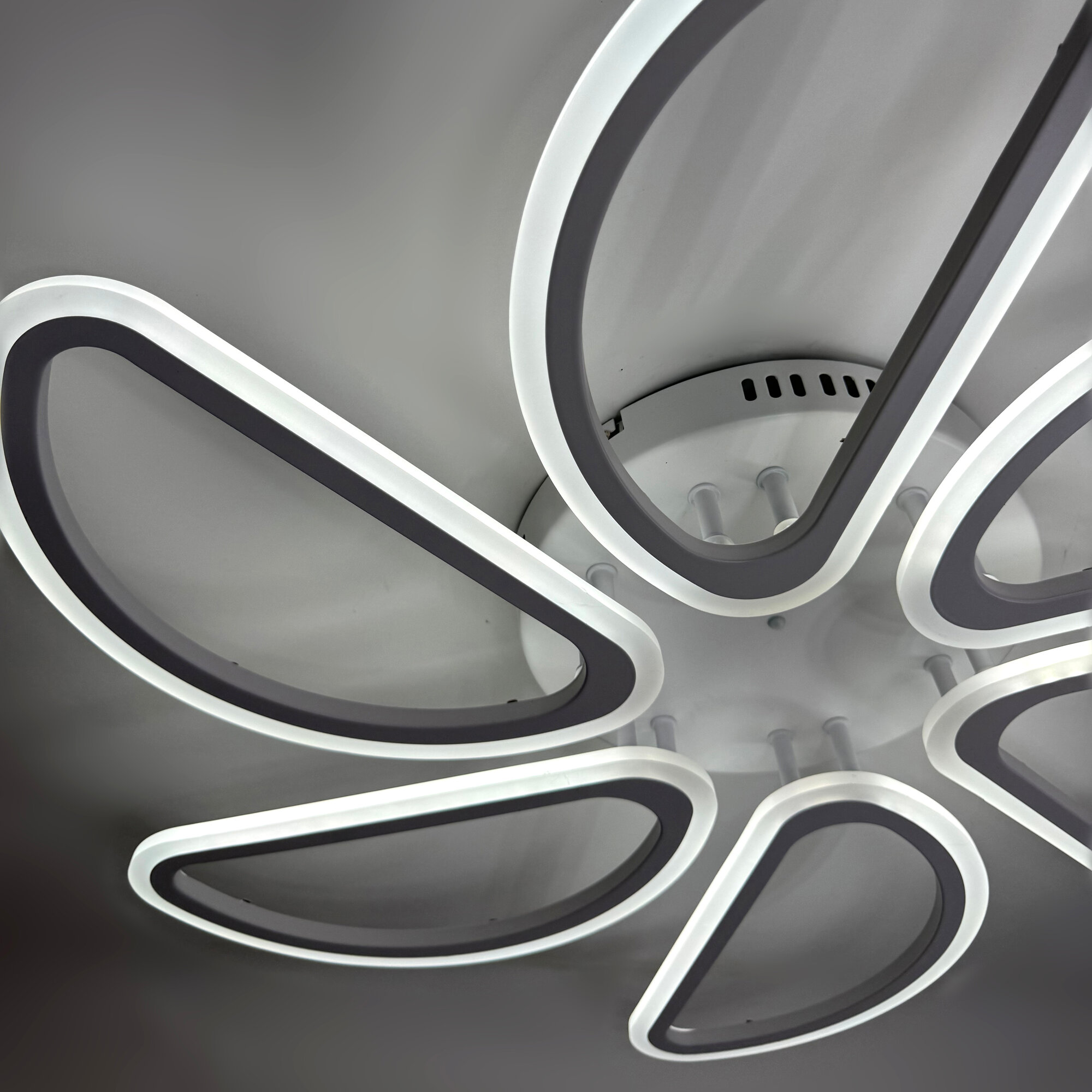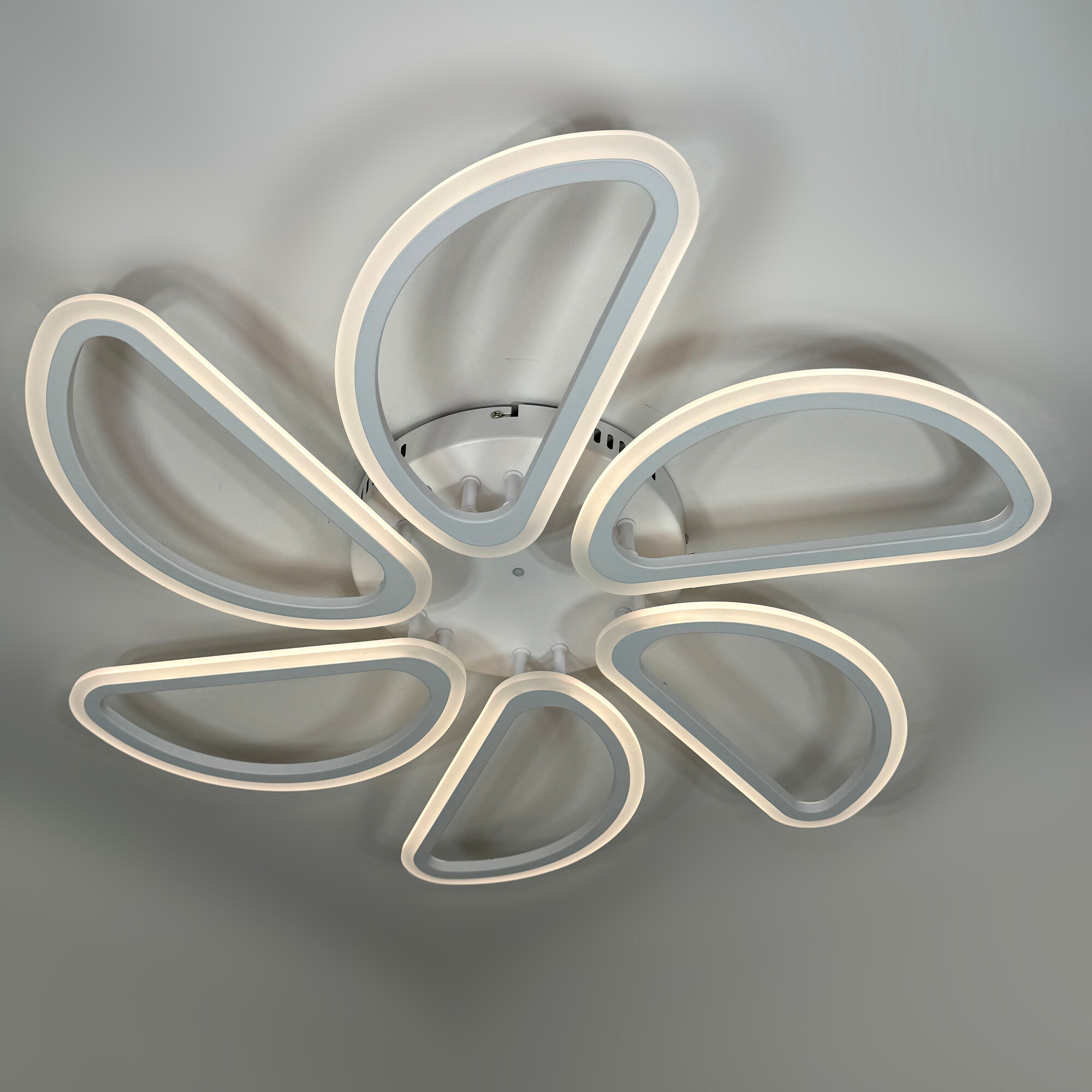Люстра потолочная светодиодная с пультом и диммером, белая, овалы - лепестки, 204W