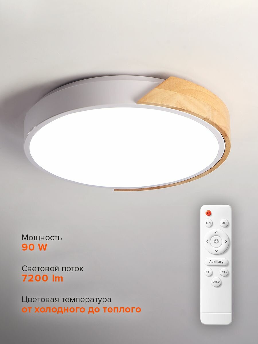 Светильник потолочный Jazzway 90w 3000-6500K D510*50мм деревянная вставка интересное: