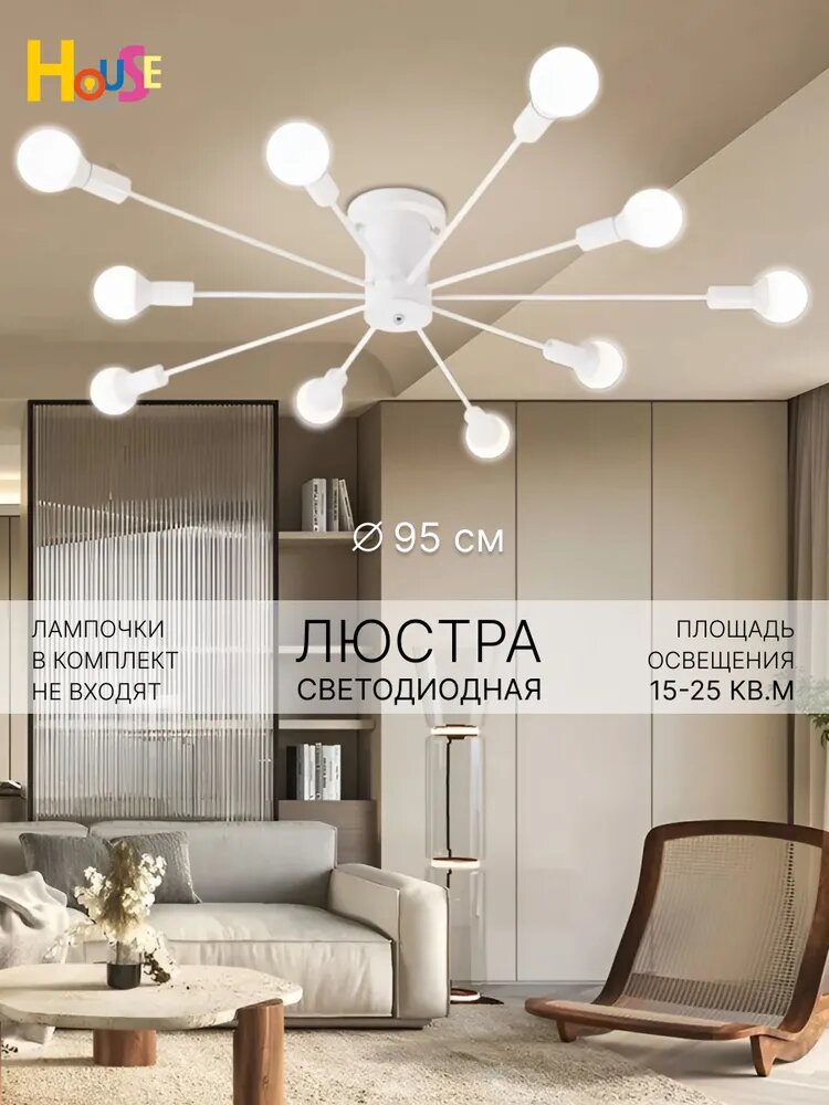 Люстра House-hallow Galaxy, E27, площадь освещения 25 кв. м, белая, 3 режима температуры свечения интересное: