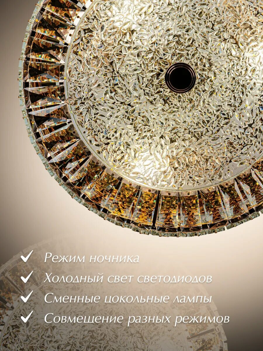 Люстра Modelux MD.2428.500 GD потолочная хрустальная для низких потолков с пультом
