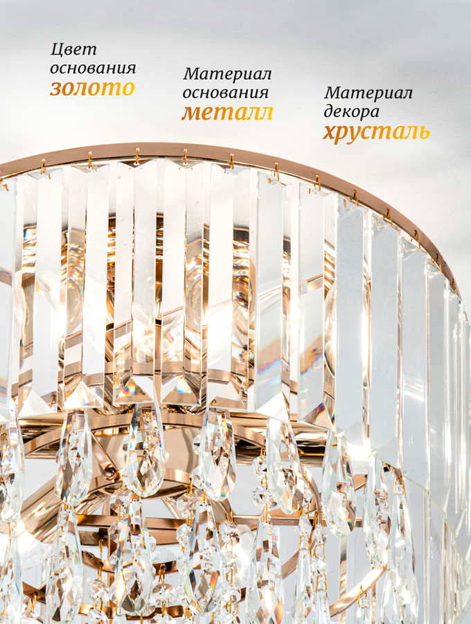 Люстра хрустальная потолочная MODELUX ML.9055.8 GD, золотая для всех типов помещений