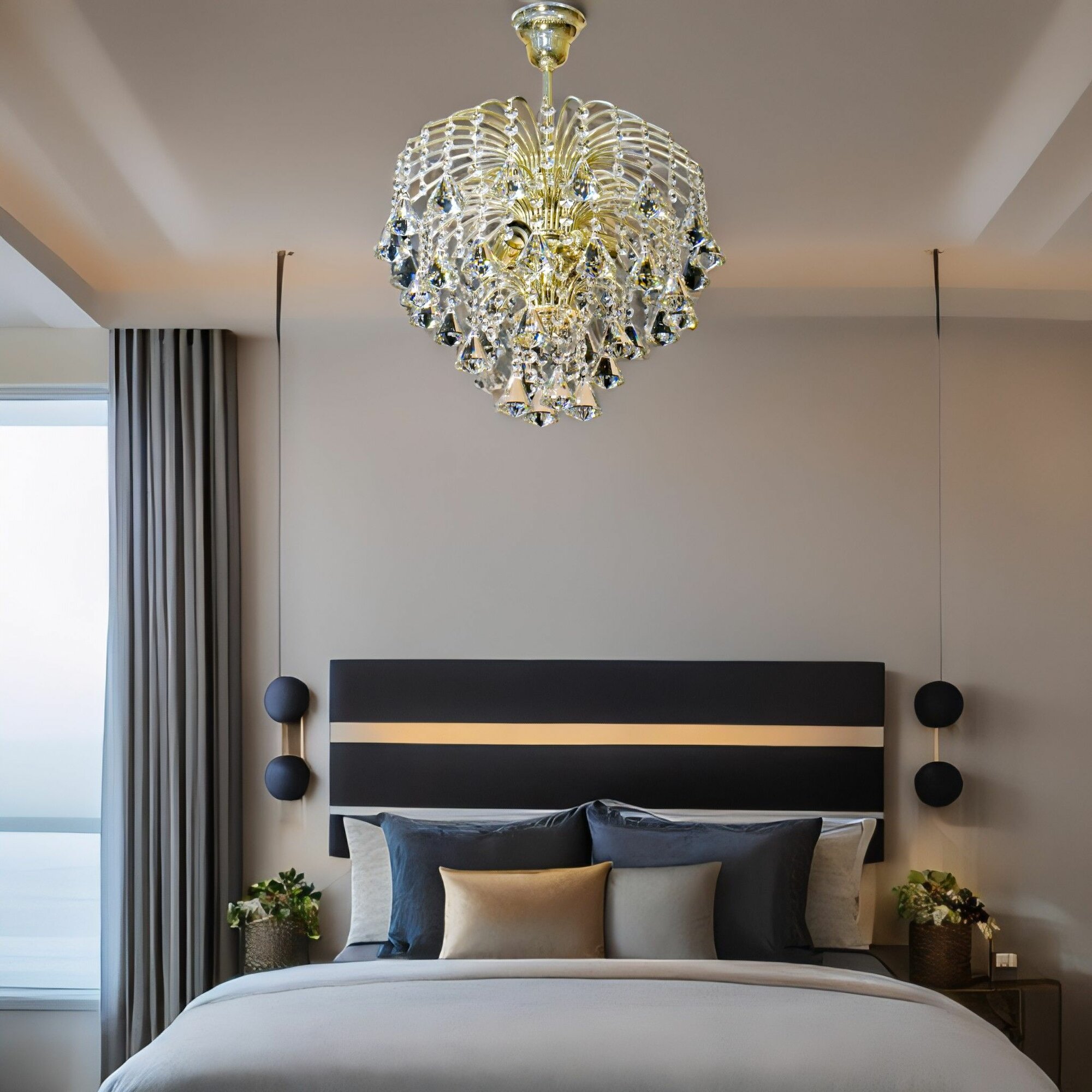 Люстра Потолочная Хрустальная "Брызги" Конус 3 лампы/Золото интересное: