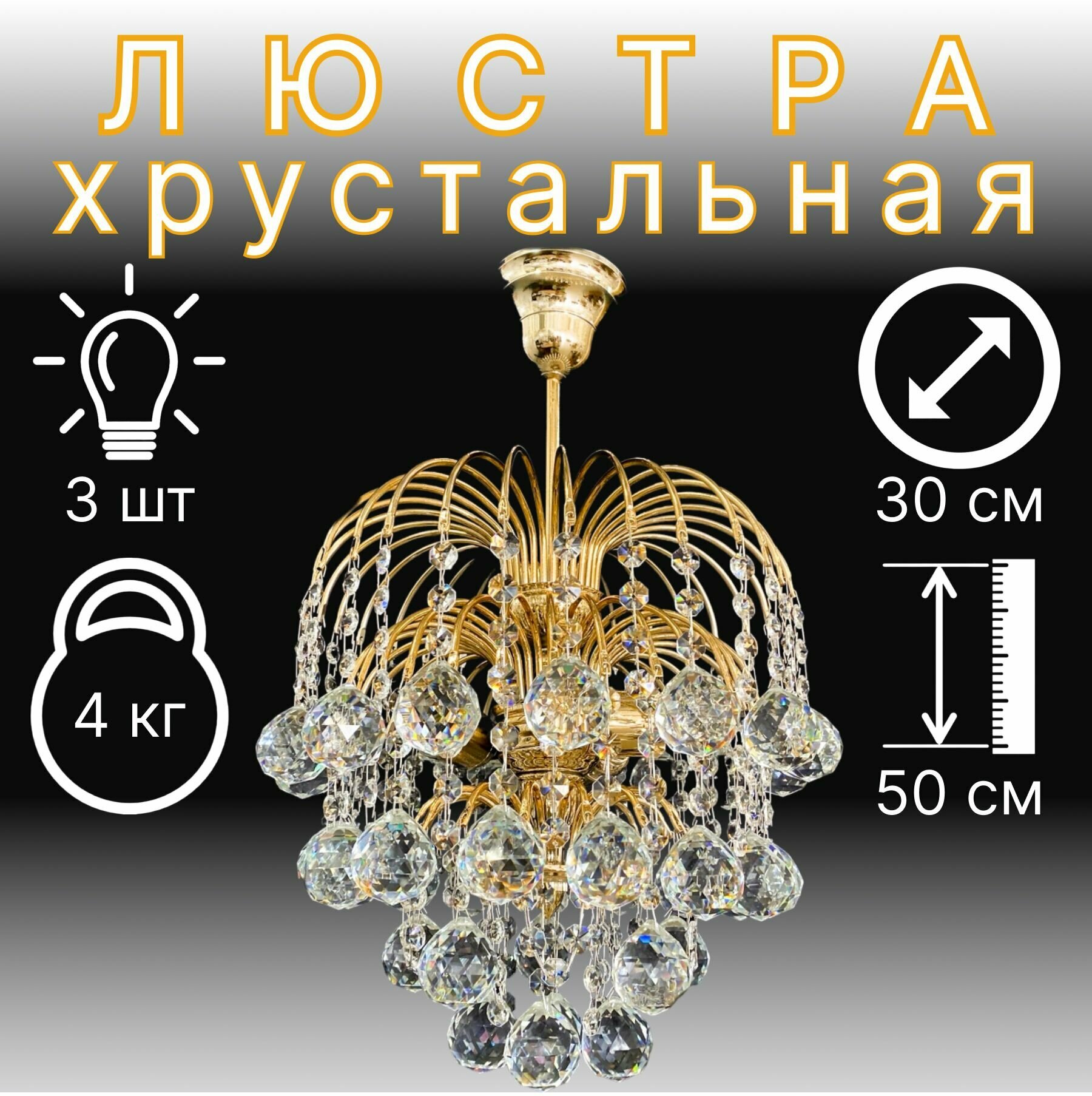 Люстра Потолочная Хрустальная "Брызги" Шары 40 3 лампы/Золото интересное: