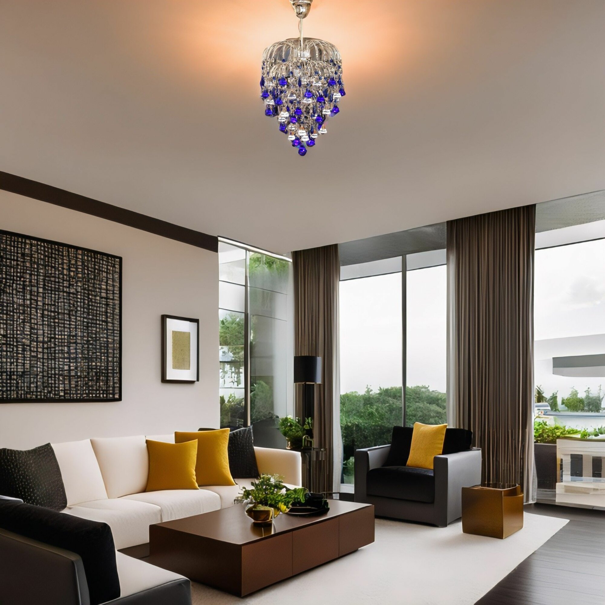 Люстра Потолочная Хрустальная "Брызги" Конус 3 лампы/Хром Синяя интересное: