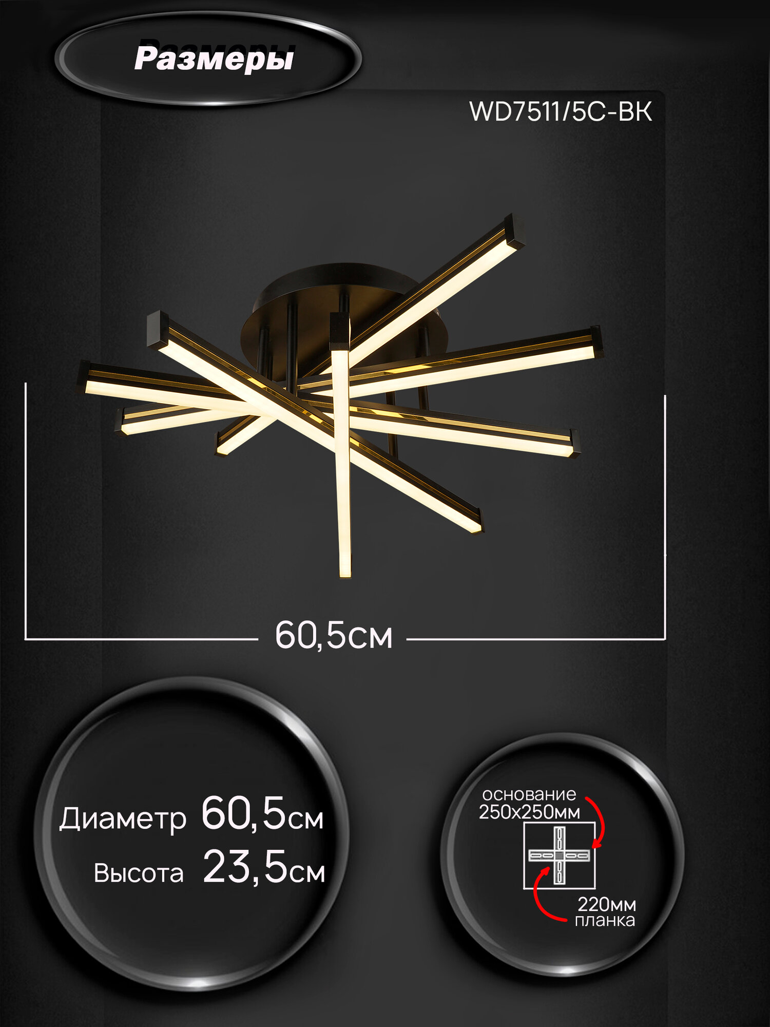 Люстра потолочная светодиодная Семь Огней, черная с пультом, до 20 кв. м. интересное: