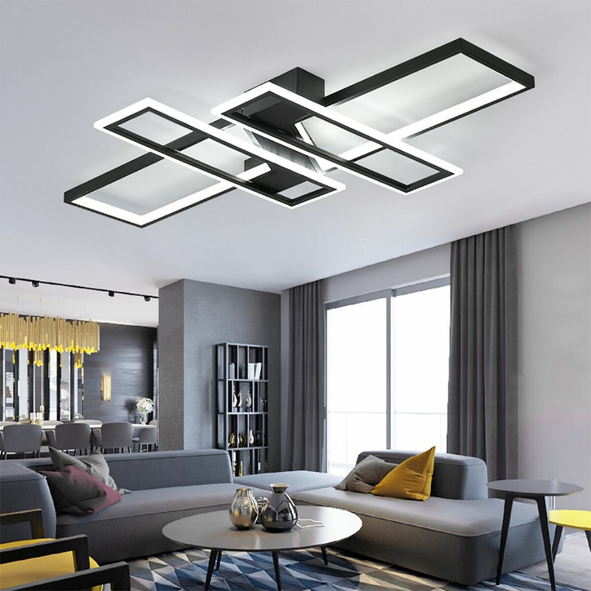 Купить Потолочный светильник,Riserva,RI309109,Прямоугольник,Ветчина,Чёрный,Пульт дистанционного управления с неполярной модуляцией спектра
