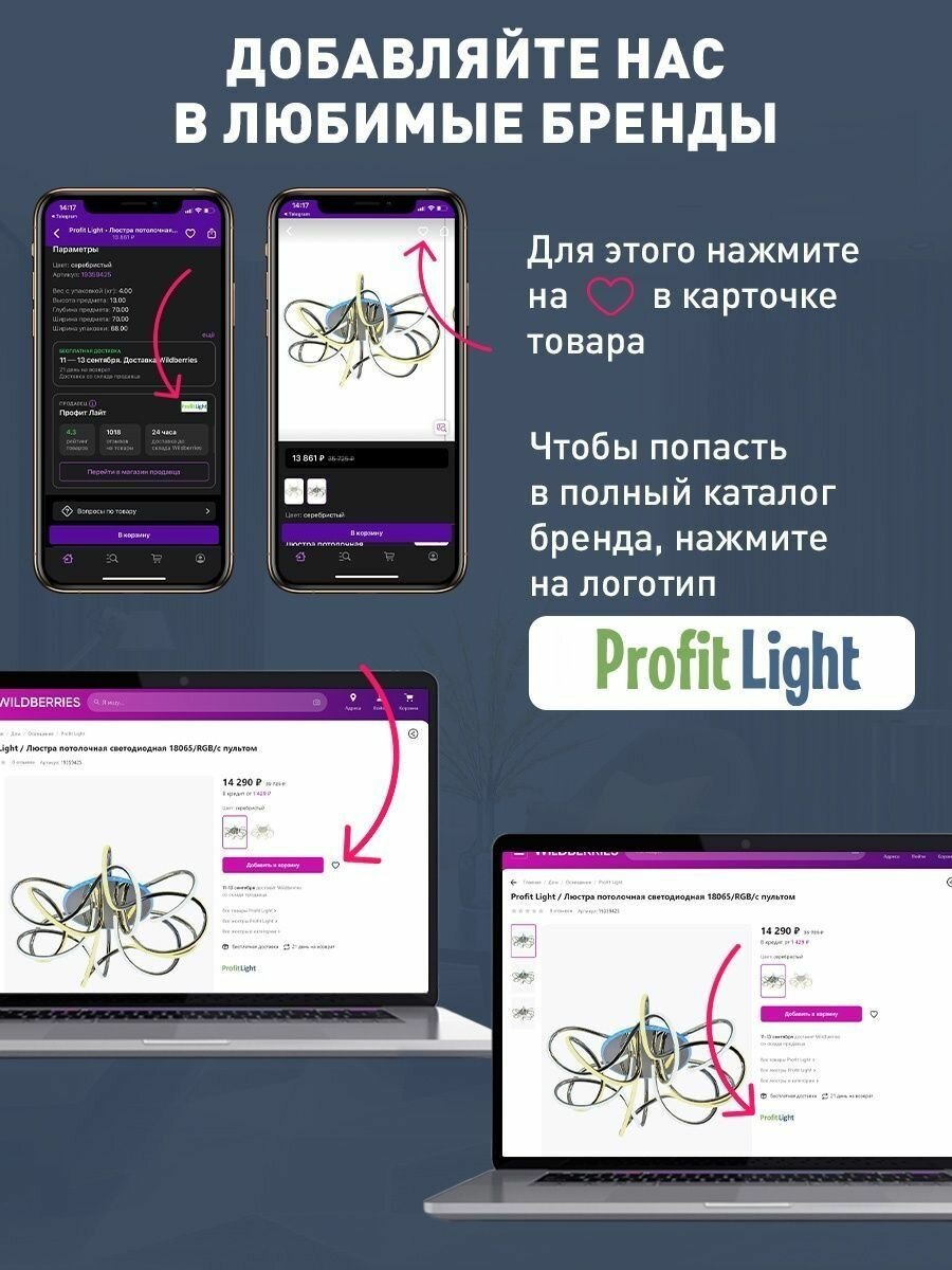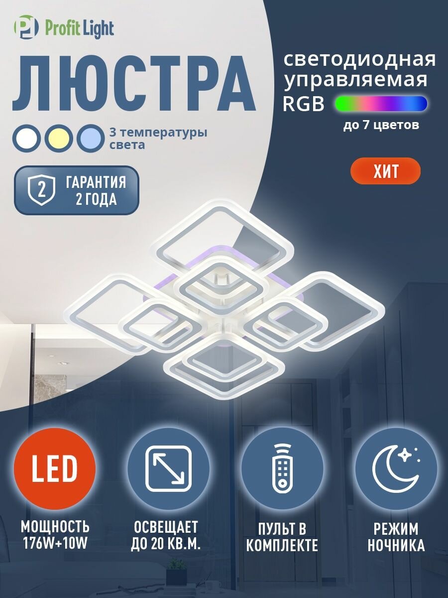 Люстра потолочная светодиодная с пультом Profit Light 8075/4+4 WHT 176W+10W интересное: