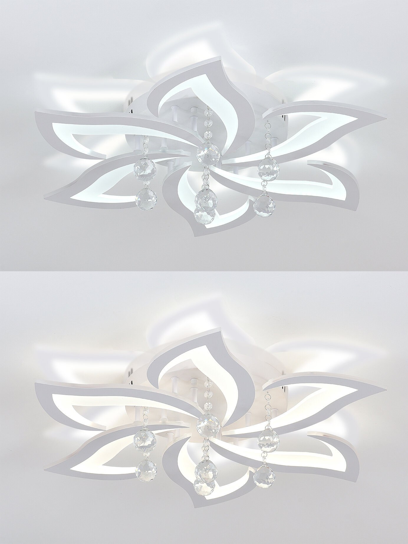 Люстра с пультом светодиодная потолочная 176W, 8 ламп, цветок, большая, белая, LEDCITY