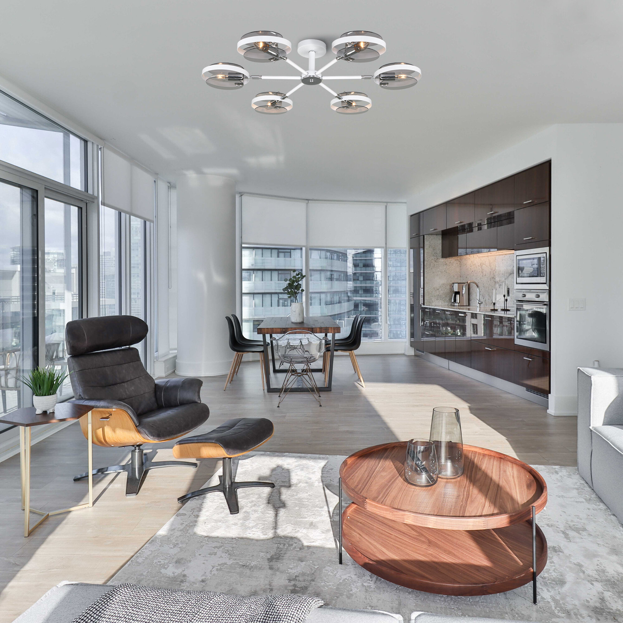 Люстра с пультом светодиодная потолочная 176W, 8 ламп, цветок, большая, белая, LEDCITY