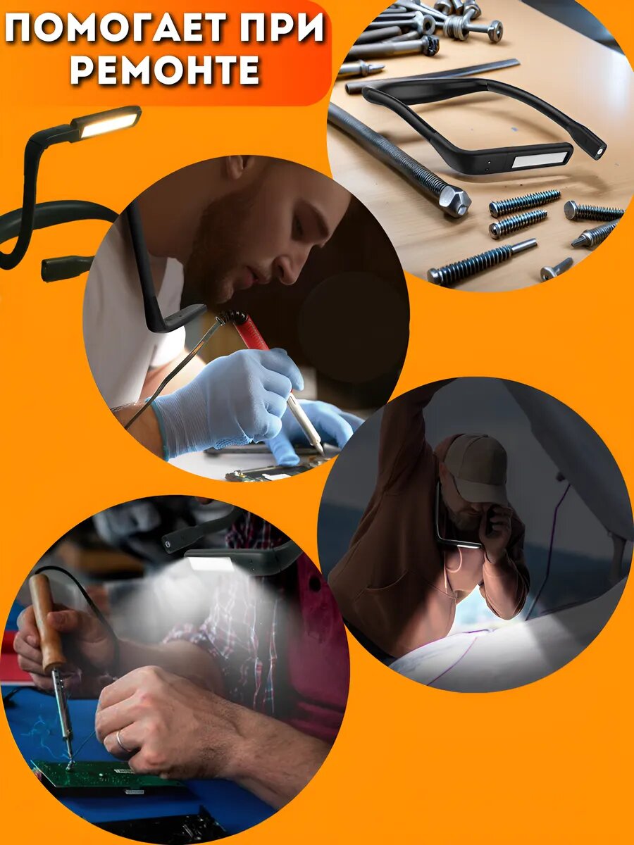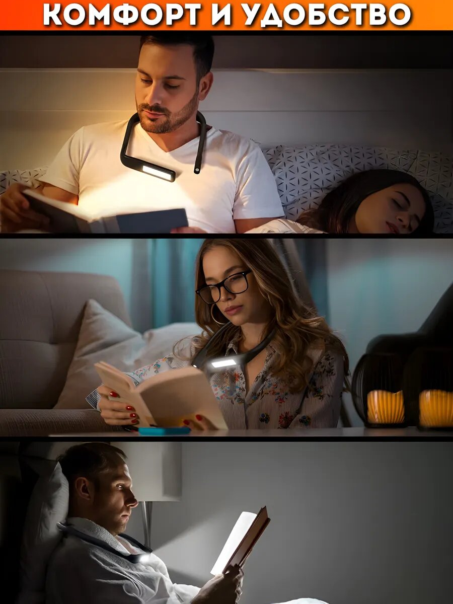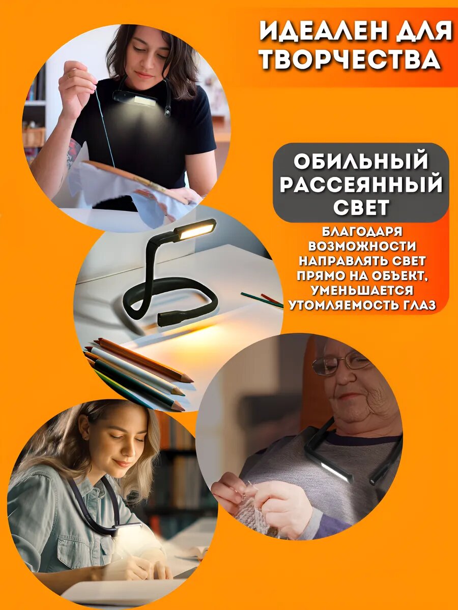 Светильник-трансформер, на шею и настольный, беспроводной, фонарик на шею интересное: