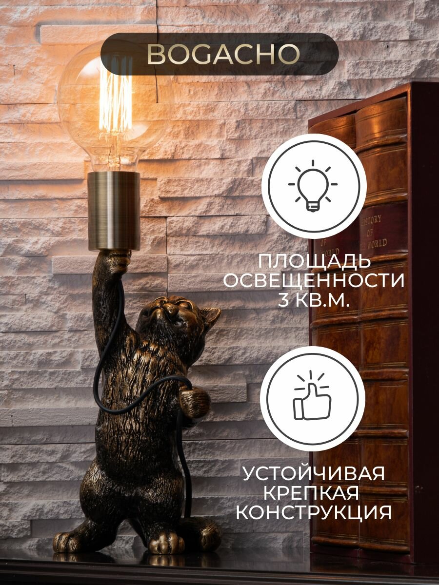 Настольный светильник Bogacho Кот Люмен для рабочего стола, тумбы, туалетного столика в спальне и гостиной интересное: