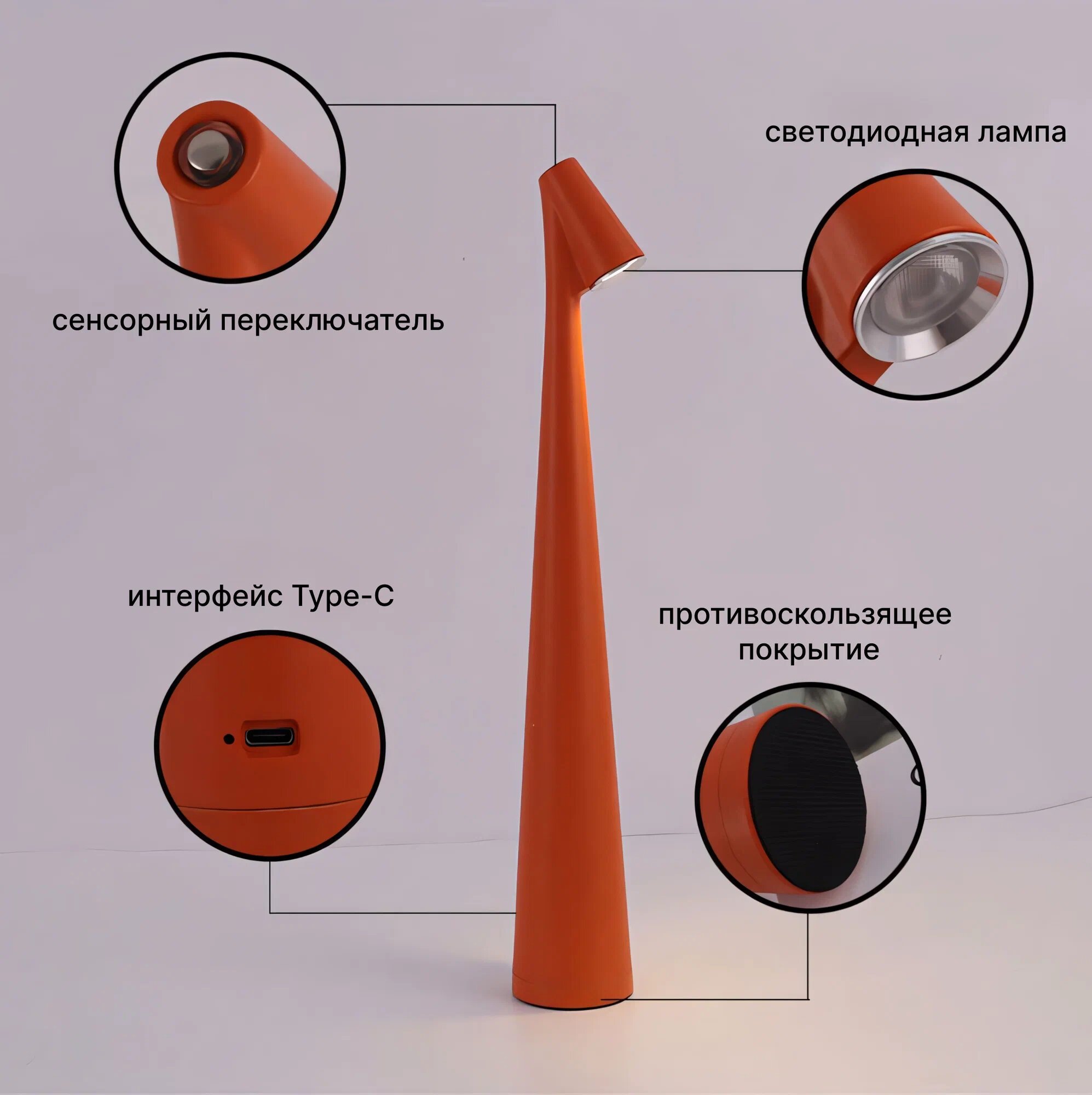 СохранитьМинималистичная настольная лампа с регулировкой яркости и сенсорным управлением, оранжевый, 3 режима света, 35х5 см. интересное: